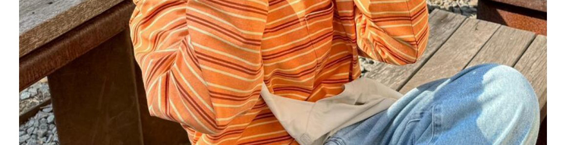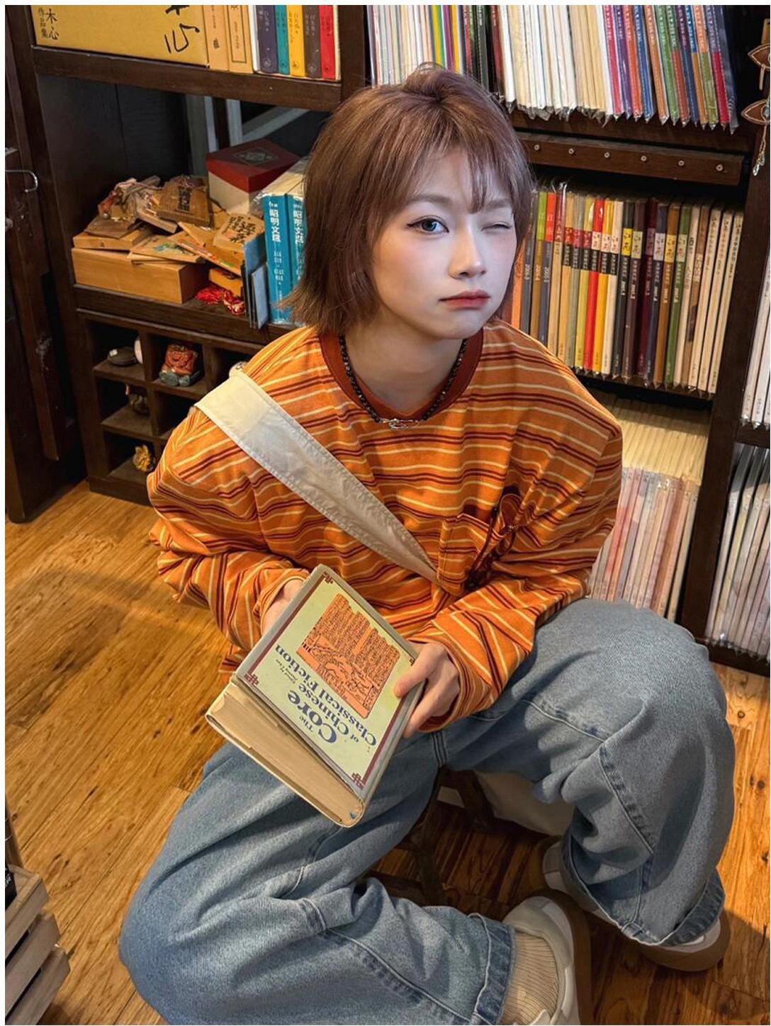 Soft and comfortable Japanese retro-style striped colorblock tee. Loose fit perfect for daily layering and casual wear.