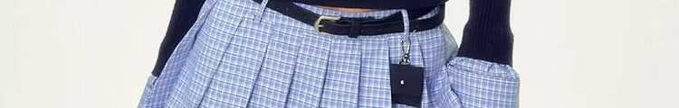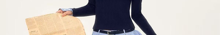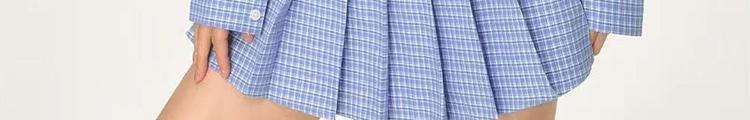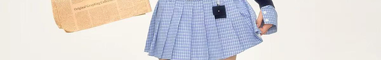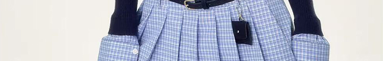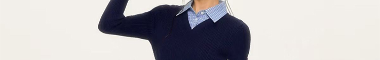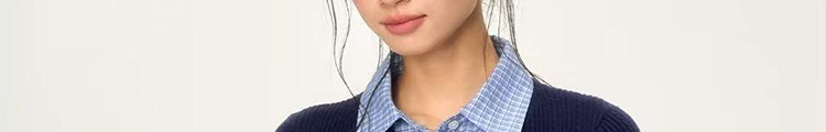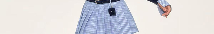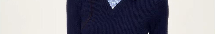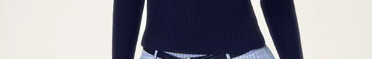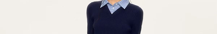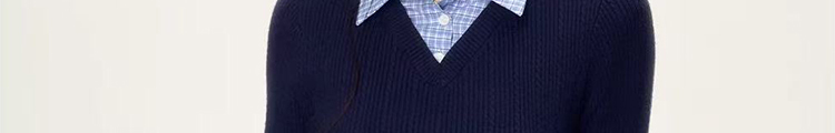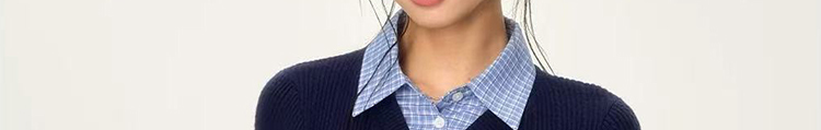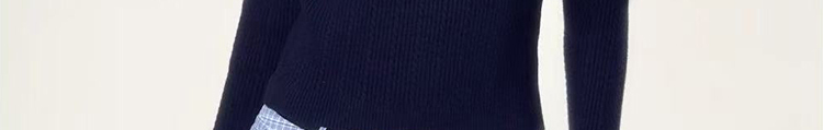 - Top: Slim-fit long-sleeve polo knit with faux two-piece design and check patchwork, soft autumn fabric.
