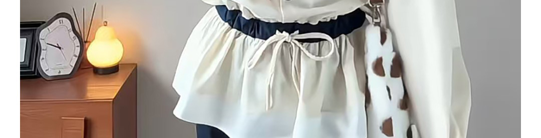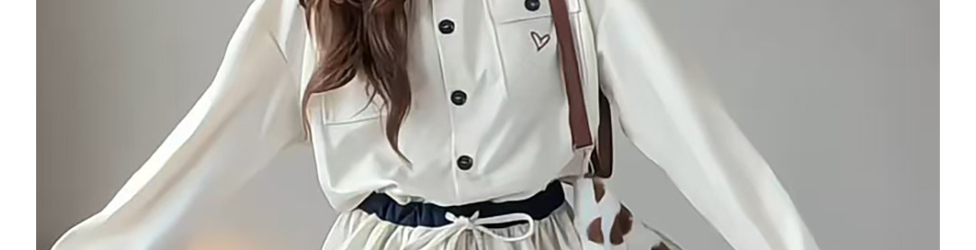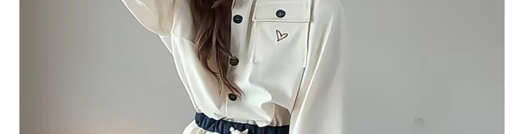 - Top: Long sleeve shirt with heart embroidery and colorblock stitching, elastic waist, soft autumn fabric.