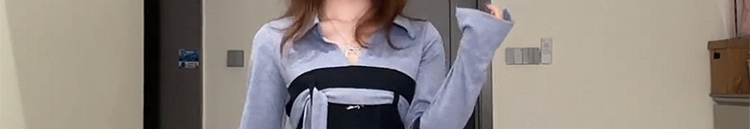 Korean-style layered knit top with colorblock details. Slim fit, perfect for autumn casual fashion.