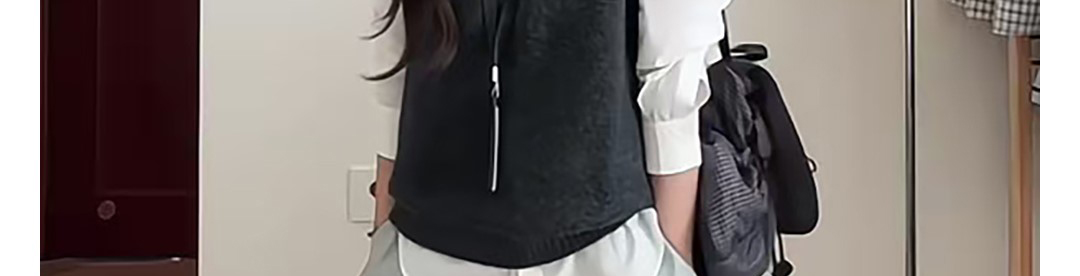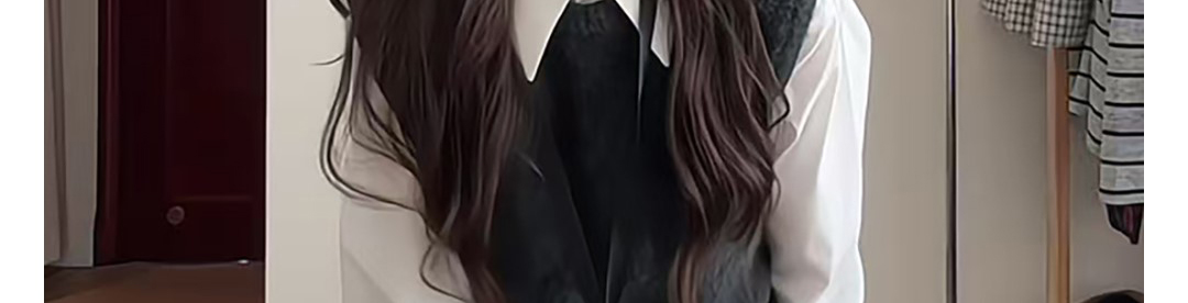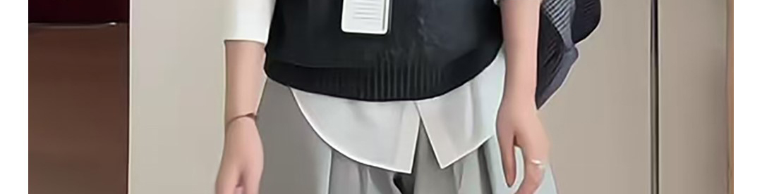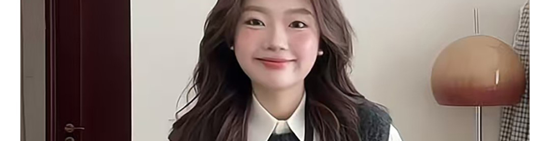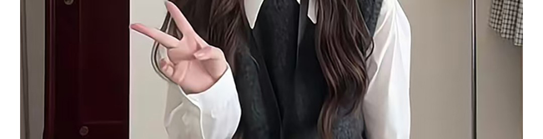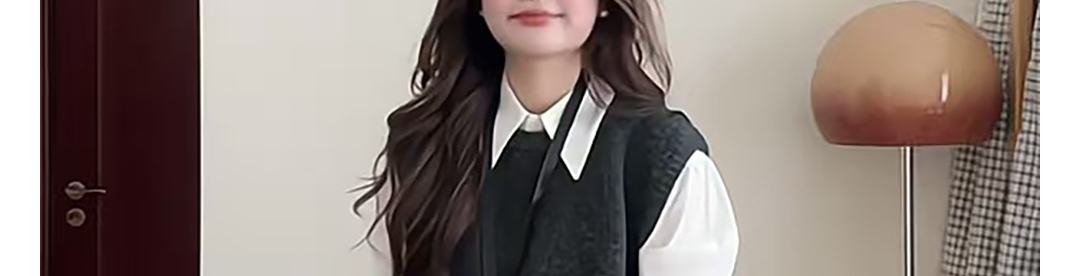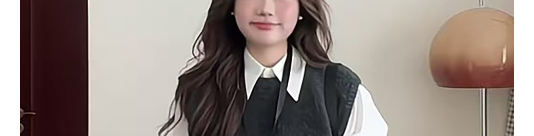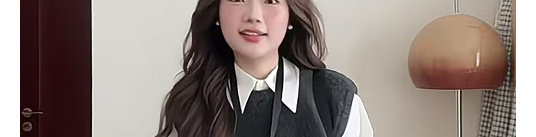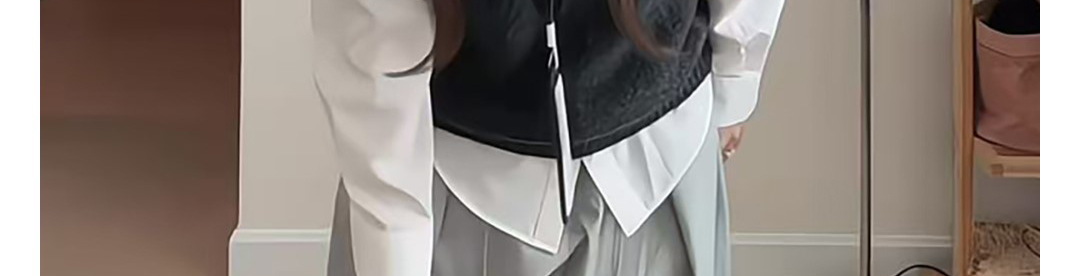 - Top: Slim-fit knit vest with layered design, soft autumn fabric, minimalistic Korean style.