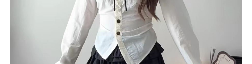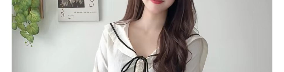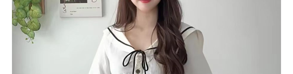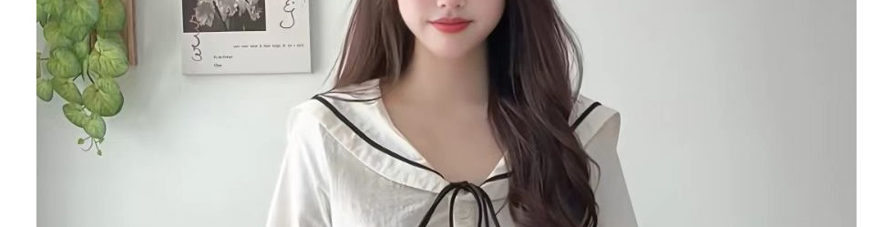 - Top: Slim-fit long sleeve shirt with sailor collar, soft breathable fabric for autumn.
