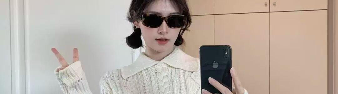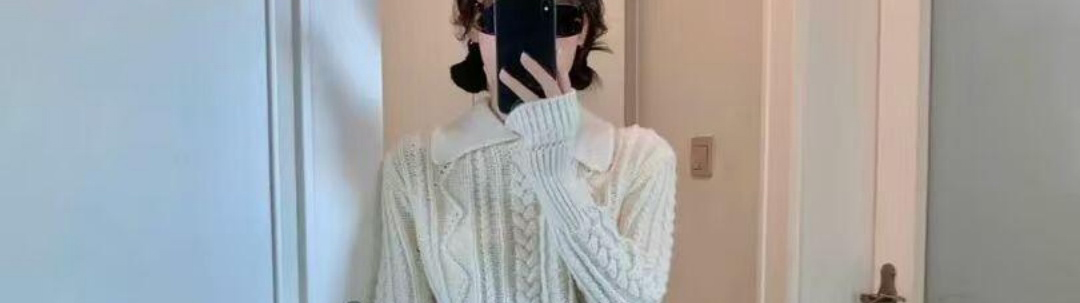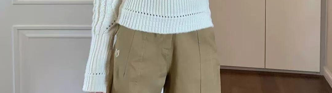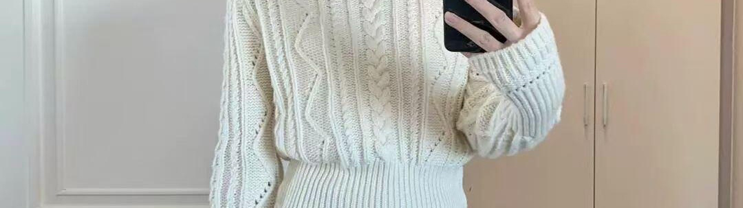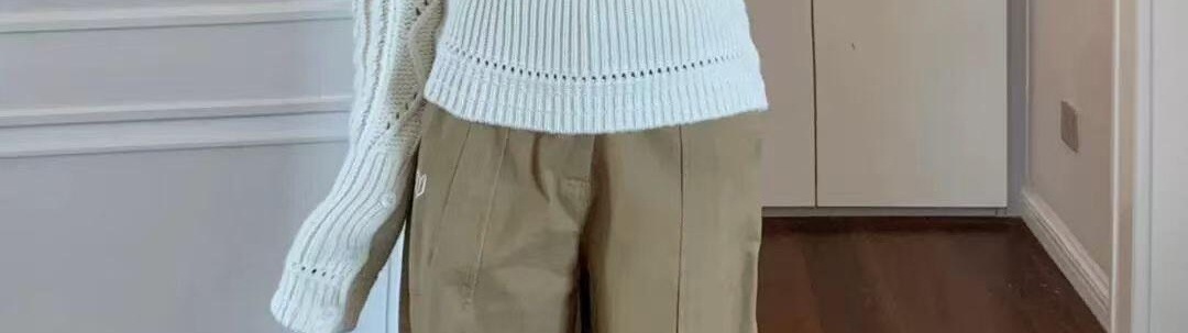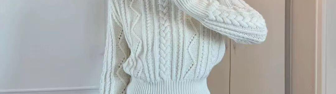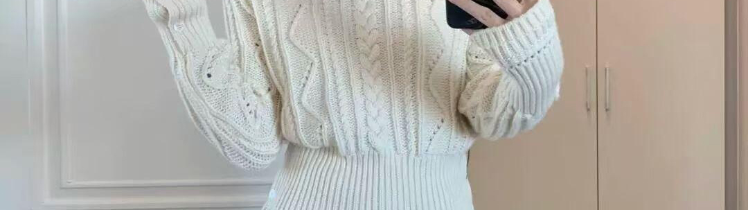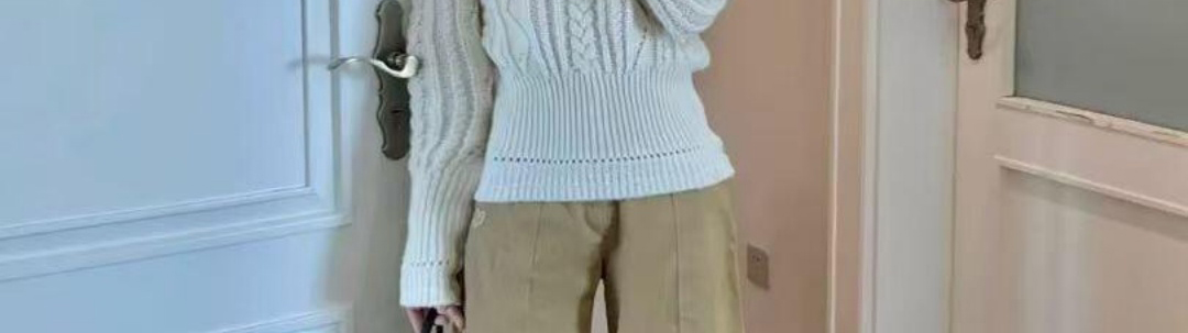 - Top: Long sleeve cable knit sweater with white collar, soft autumn fabric, slim-fit waist design.