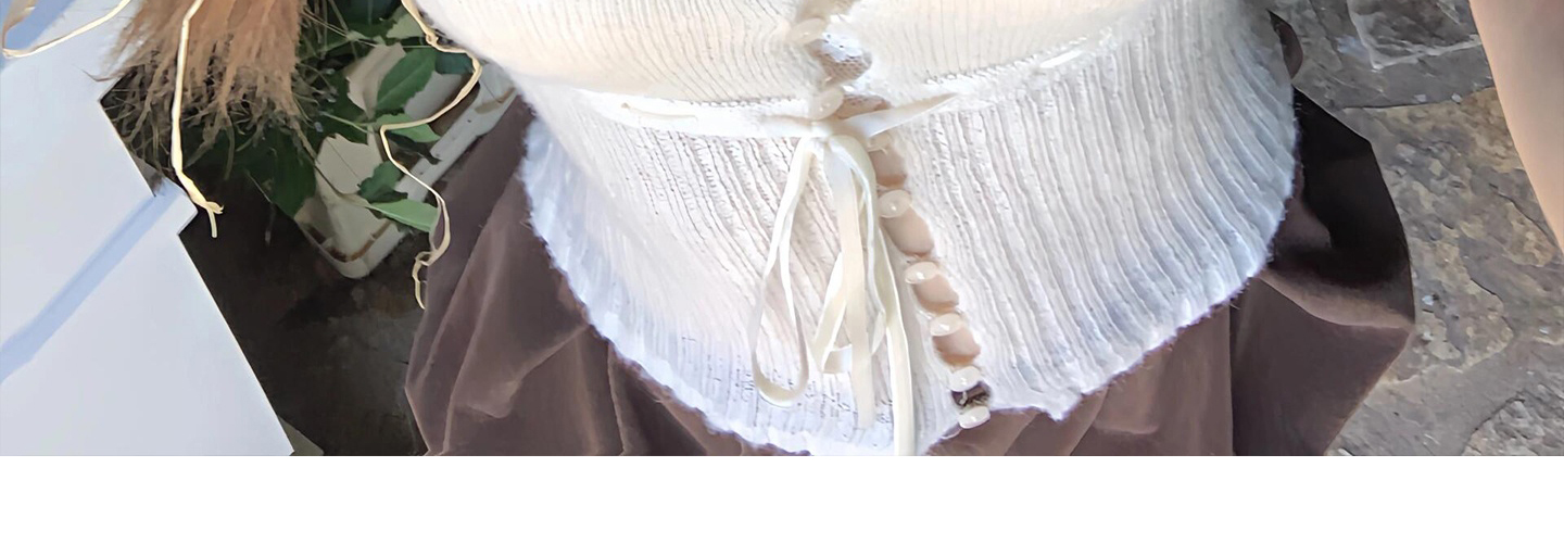 U-neck knit sweater with lace trim and halter camisole layer. Slim fit, chic and cozy for autumn.