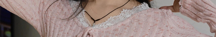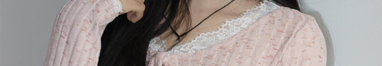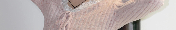 - Top: Slim-fit long sleeve knit top with lace V-neck, soft autumn fabric for layering.