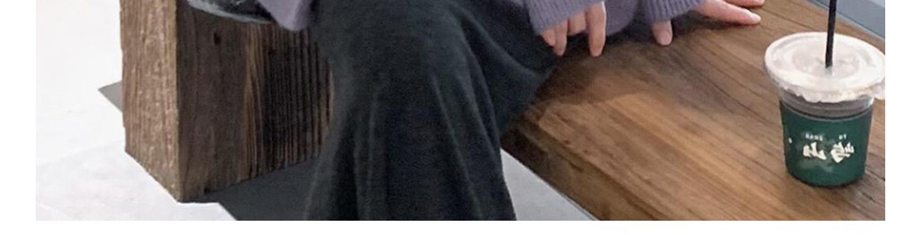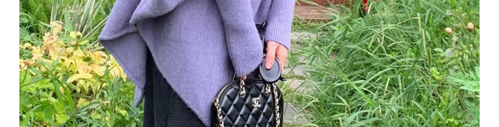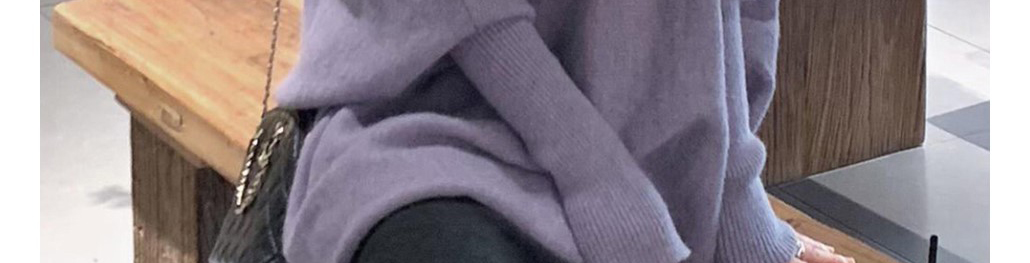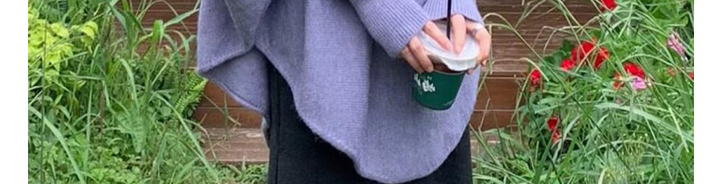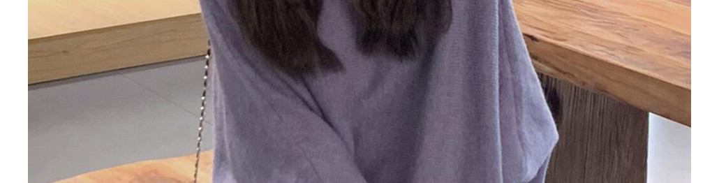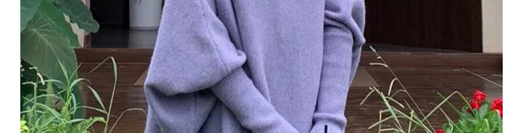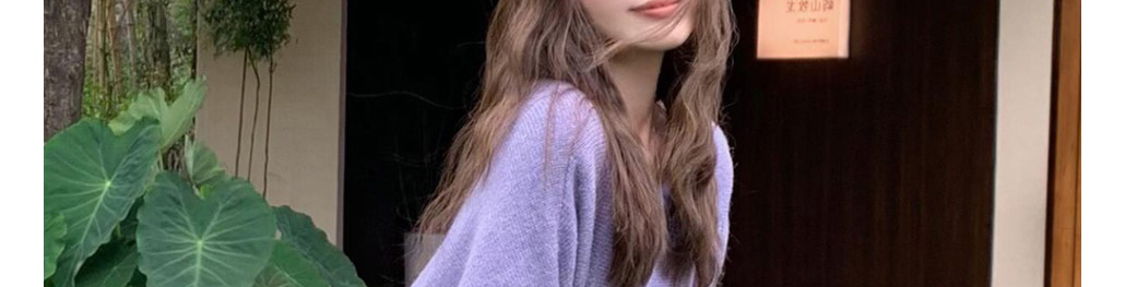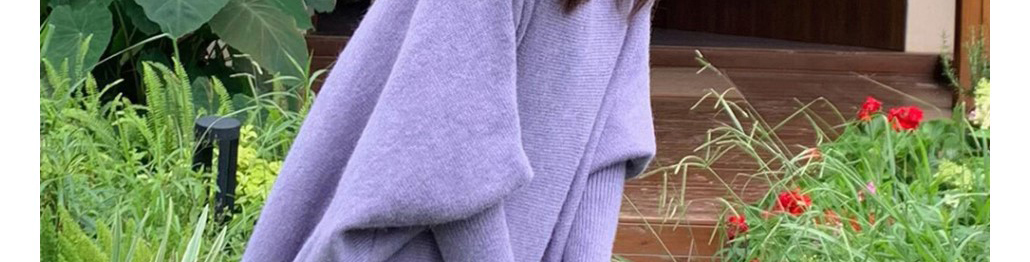 - Top: Cozy lavender knit sweater with batwing sleeves, relaxed fit, and soft-touch fabric for ultimate comfort.