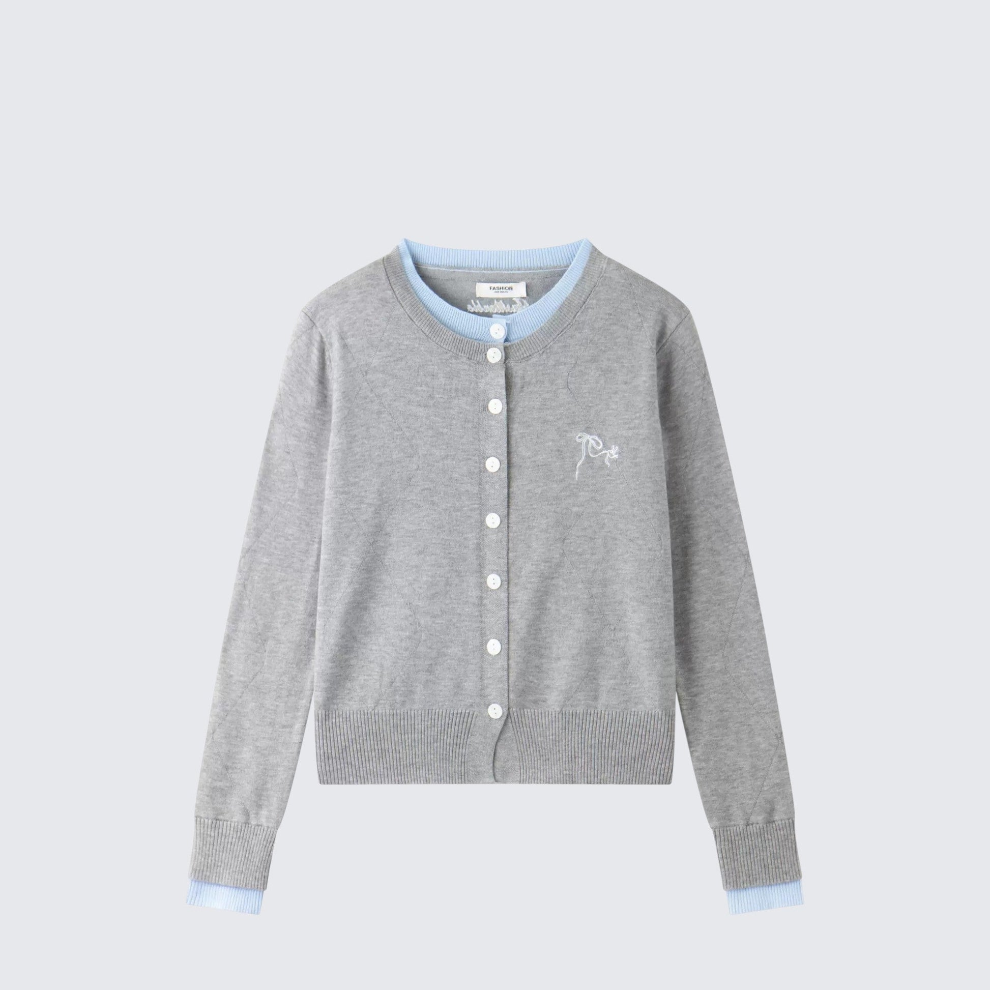 - Cardigan: Double-layer knit cardigan with diamond embroidery and logo, soft autumn-winter fabric, relaxed fit.