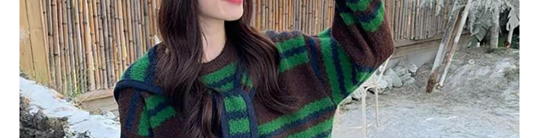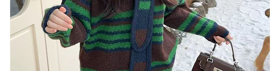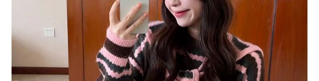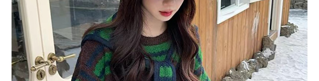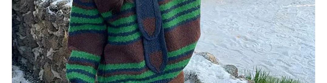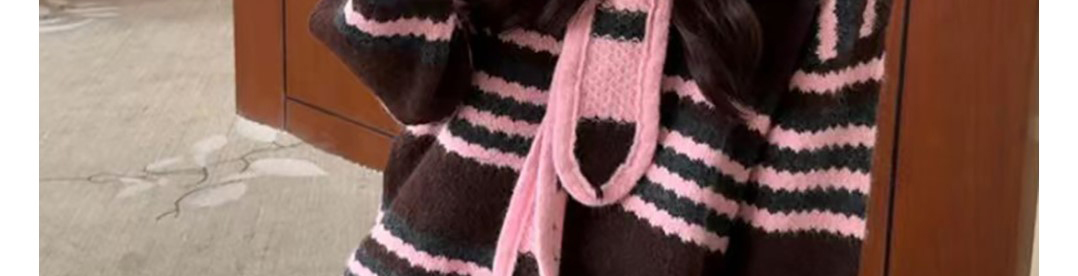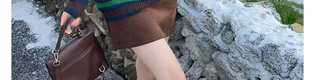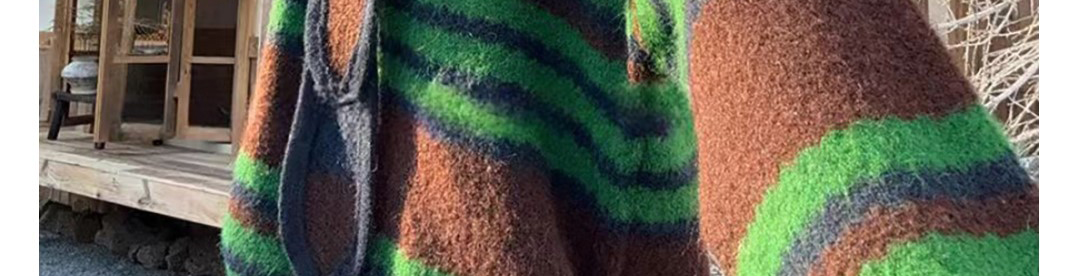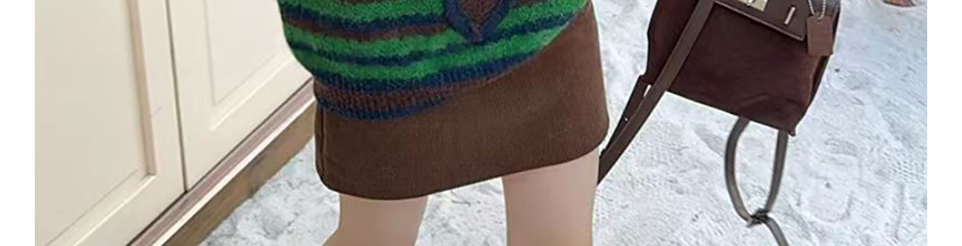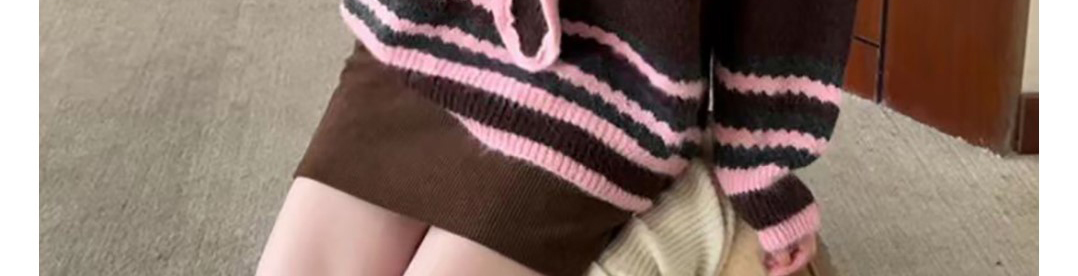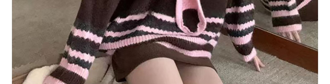 - Top: Two-piece illusion knit sweater with hood, loose fit, cozy autumn fabric.