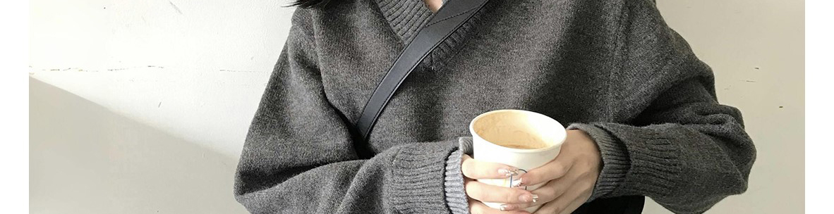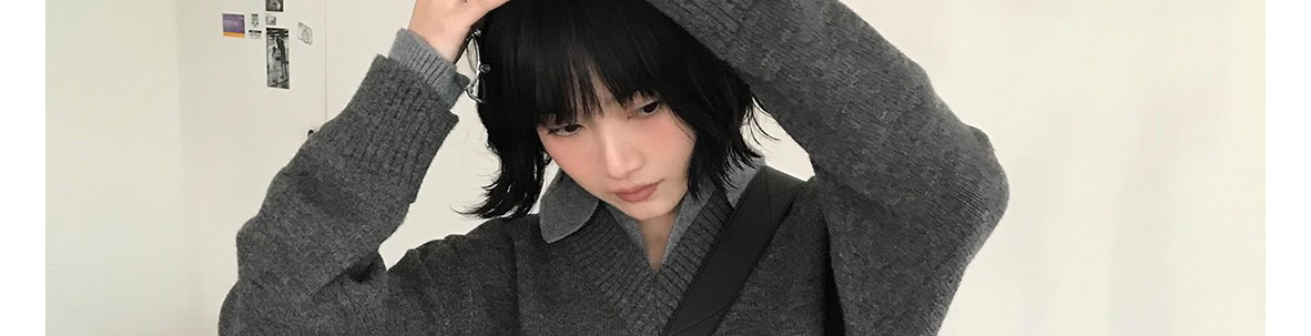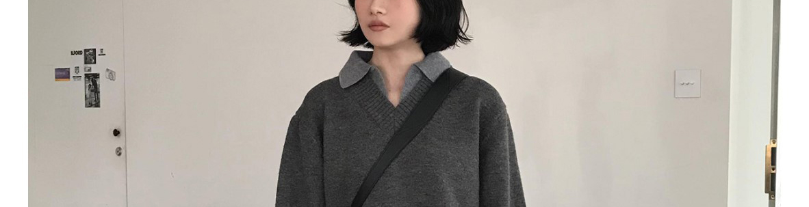 Korean-style layered V-neck knit with a cozy loose fit. Ideal for a casual yet polished autumn vibe.