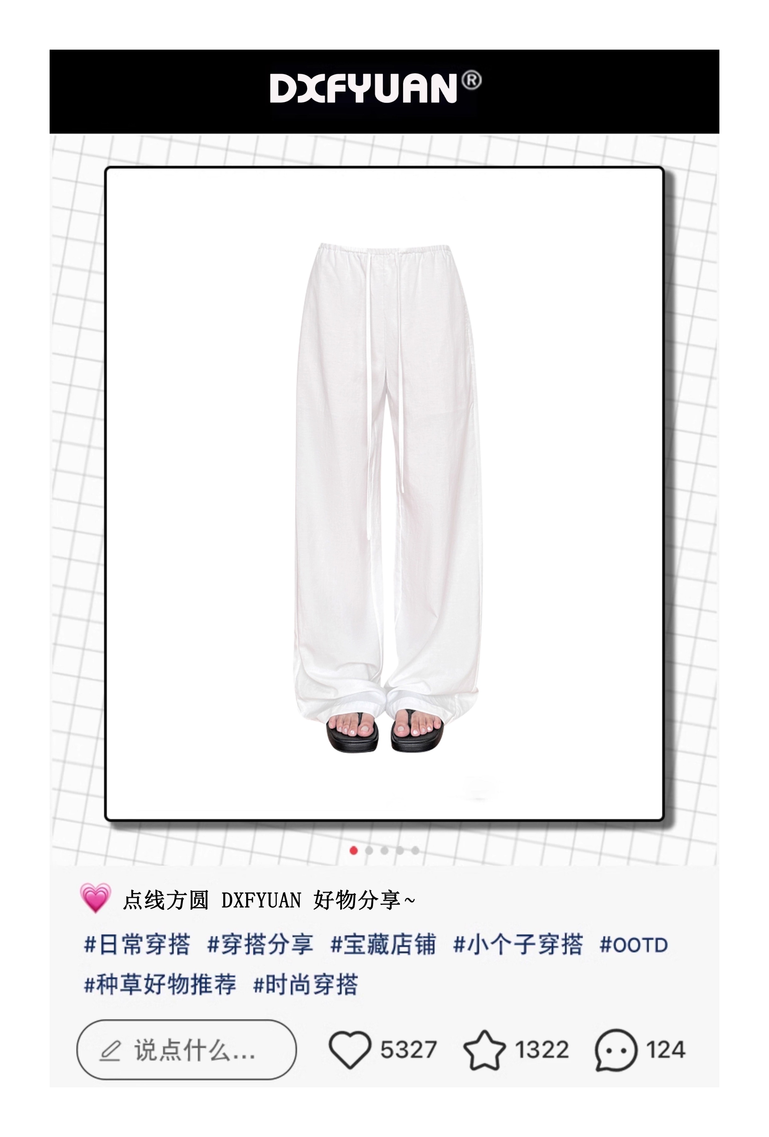 - Pants: Low-rise wide-leg linen pants with breathable lightweight fabric, drapey and comfortable fit.