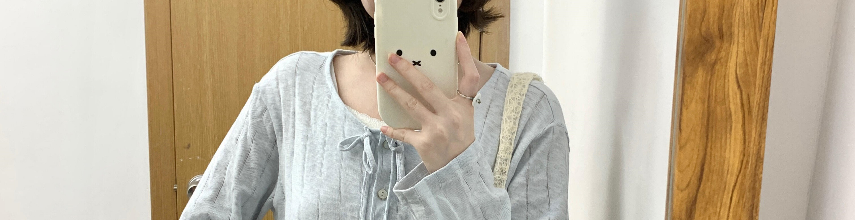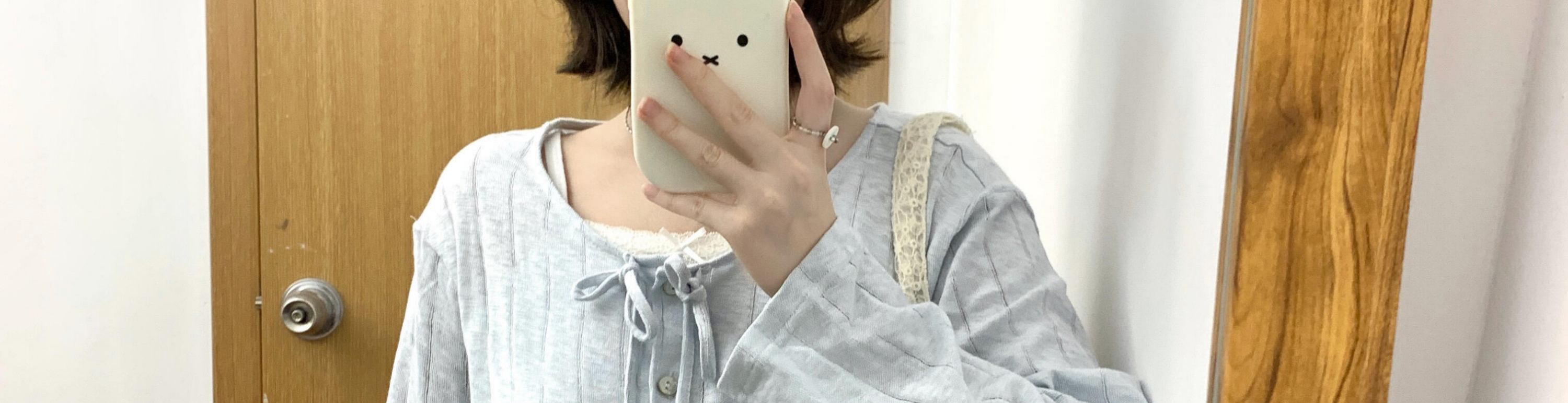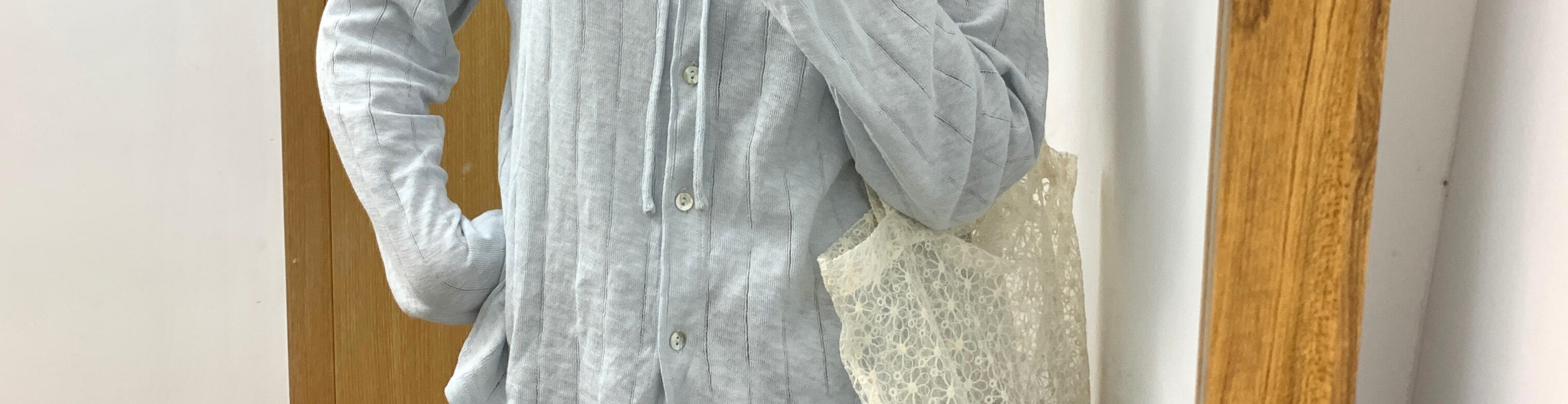 Soft misty blue knit cardigan with tie-front detail. Lightweight and casual for early autumn layering.