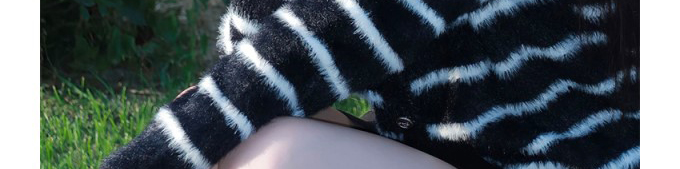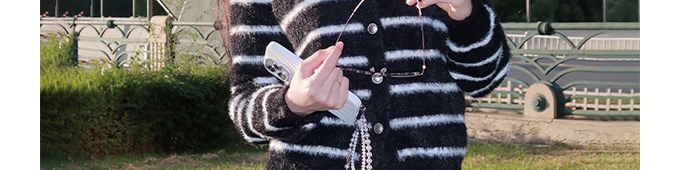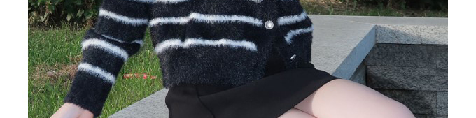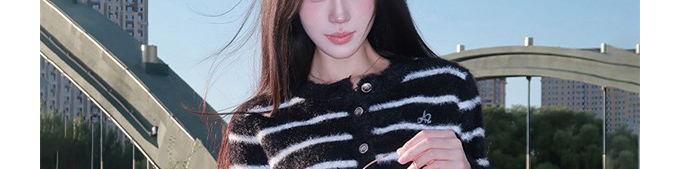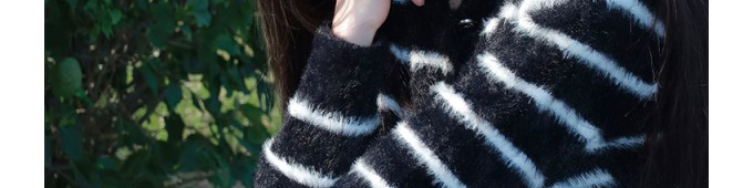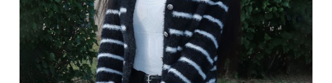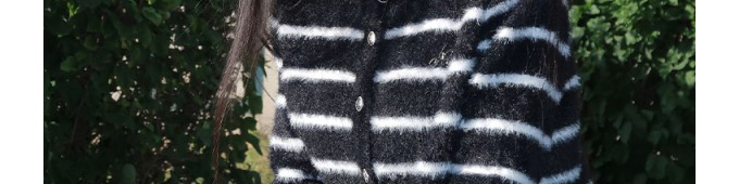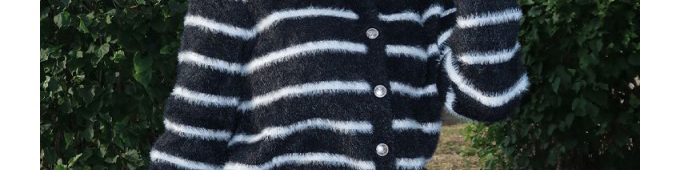 Mohair knit cardigan with stripe pattern. Loose fit, chic and cozy for autumn wear.