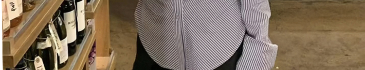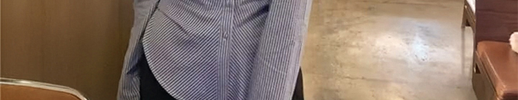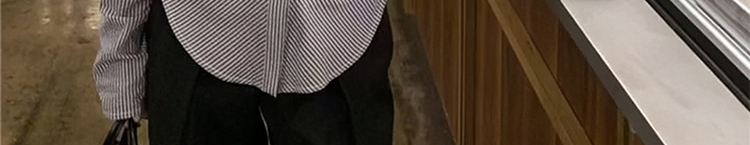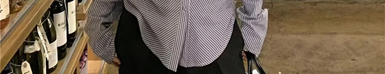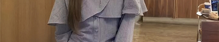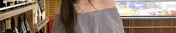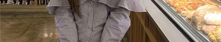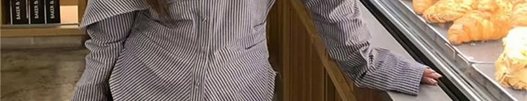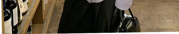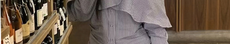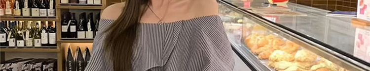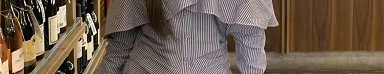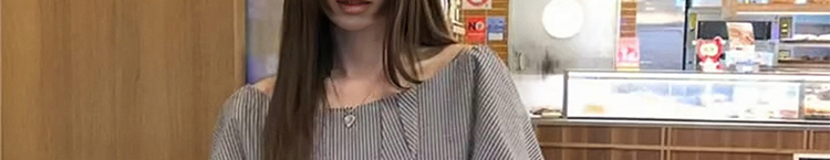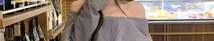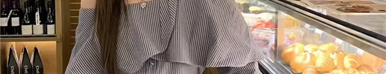 - Top: Slim-fit shirt with off-shoulder neckline, ruffle edges, and striped pattern, soft autumn fabric.