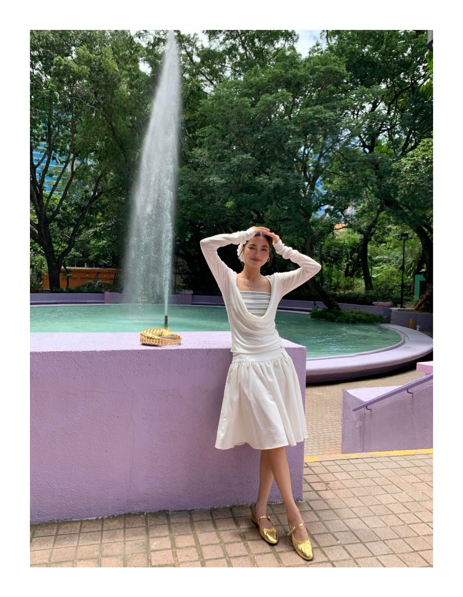 Model is 163 cm / 5’4” tall, weighs 46 kg / 101 lbs, with measurements: Bust 30.5”, Waist 25.5”, Hip 34.5”. Wearing size S. Please refer to the size guide for your fit, or DM us directly if you’re unsure.