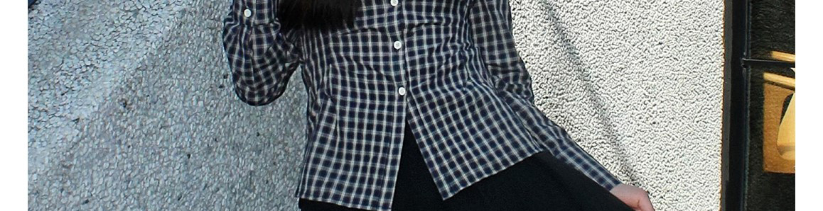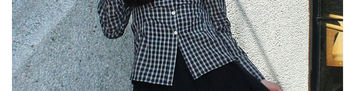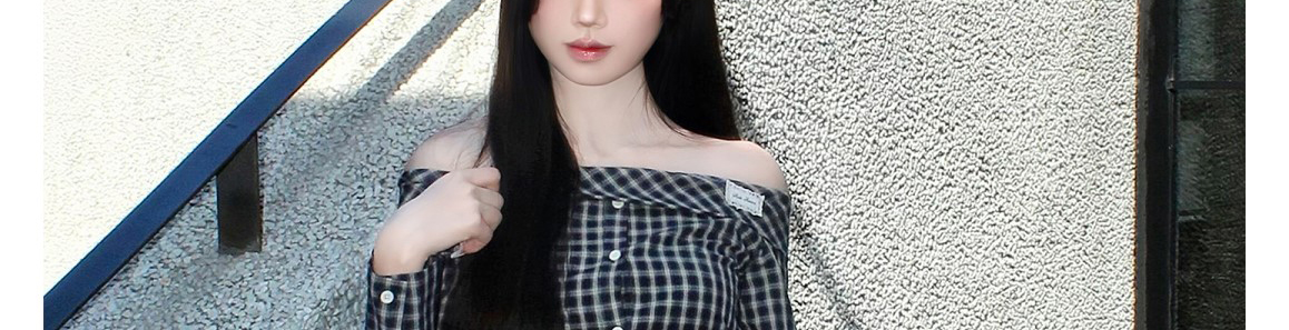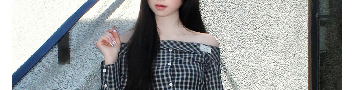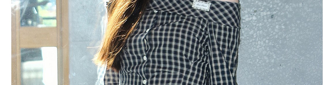 Plaid off-shoulder shirt with waist accent. Slim fit, chic and perfect for autumn.