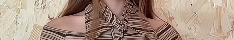 Off-shoulder striped long sleeve tee with tie detail. Slim fit, spicy girl style for early autumn.