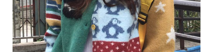 American retro panda jacquard knit cardigan with color block splicing. Loose and cozy for a lazy autumn look.