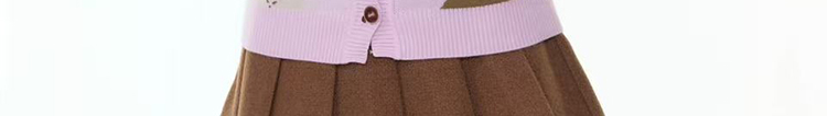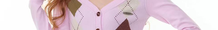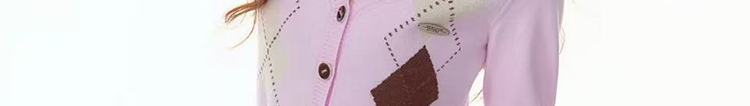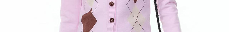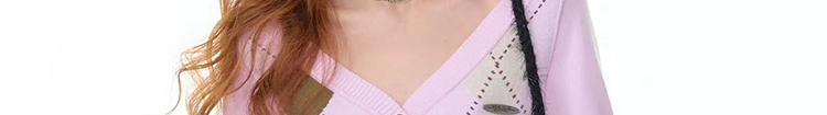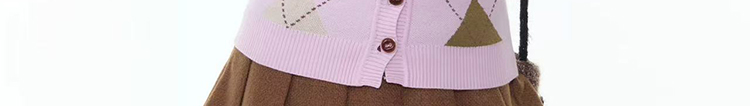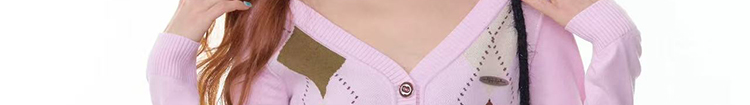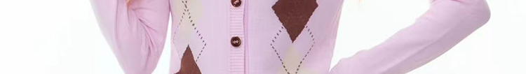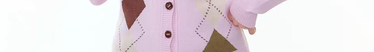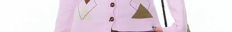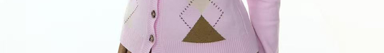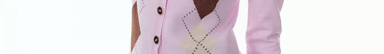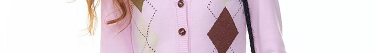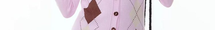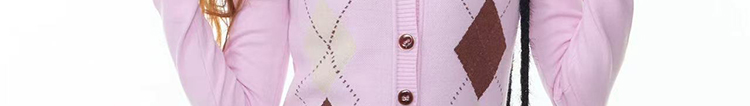- Cardigan: Slim-fit pink knit cardigan with diamond pattern and V-neck, soft autumn fabric, preppy style.