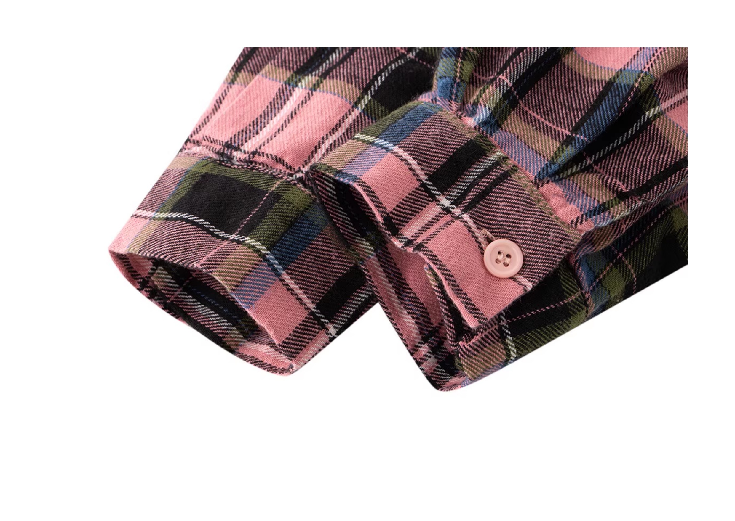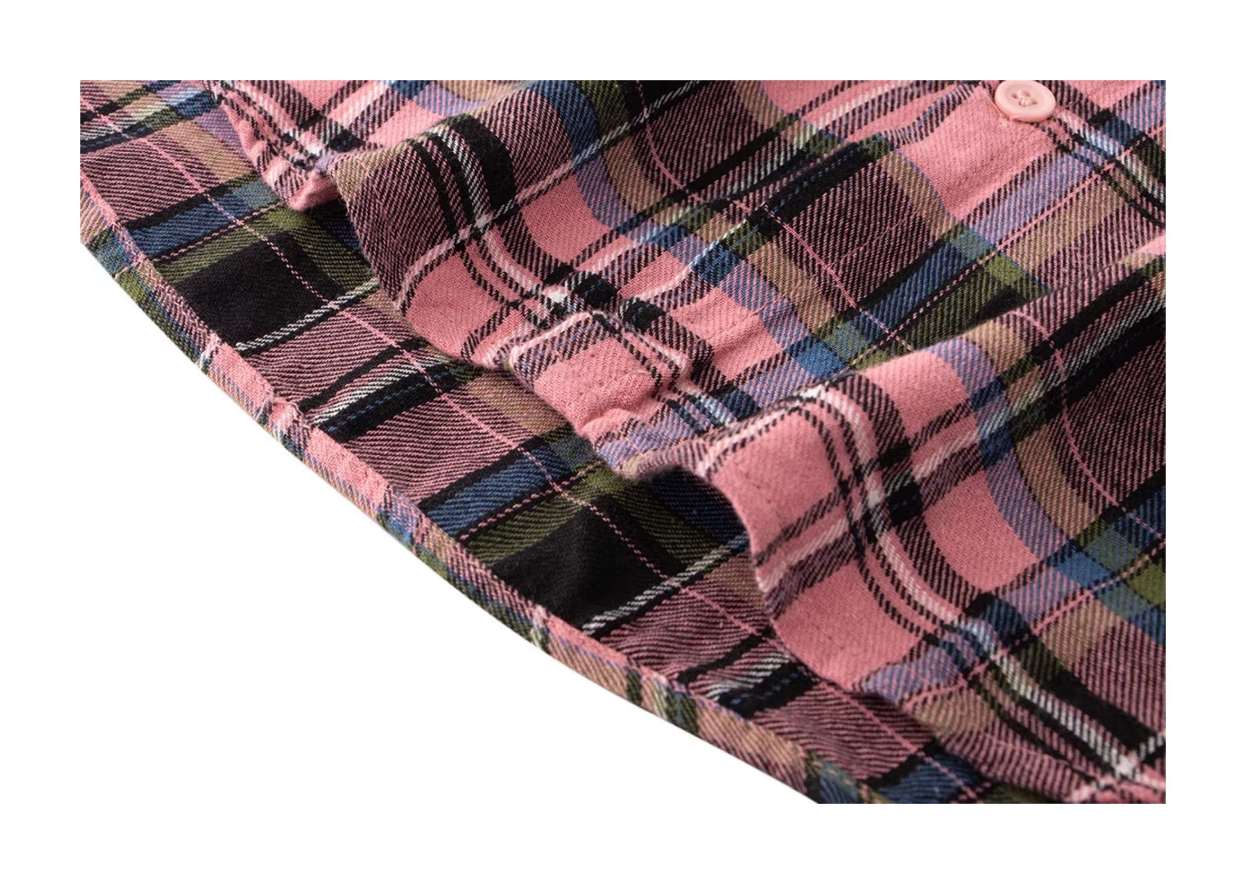 Vintage pink plaid shirt with delicate embroidery and polo collar. Loose fit and comfy casual vibe.