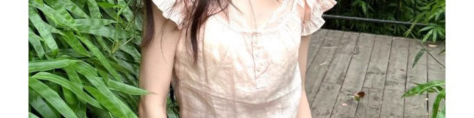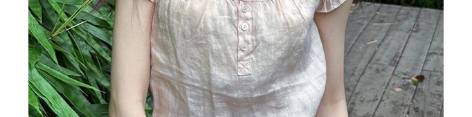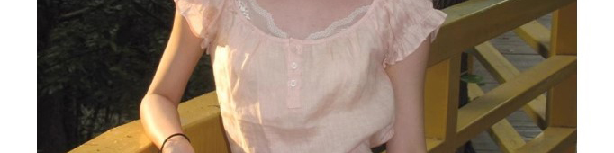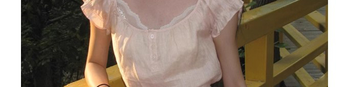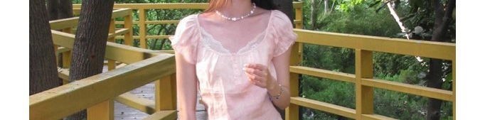 - Top: Soft pink short-sleeve top with puff sleeves and slim fit for a cute, feminine look.