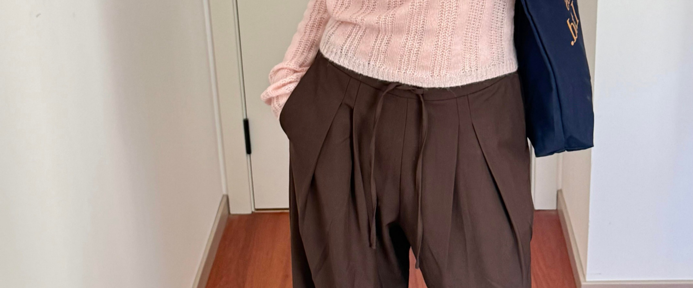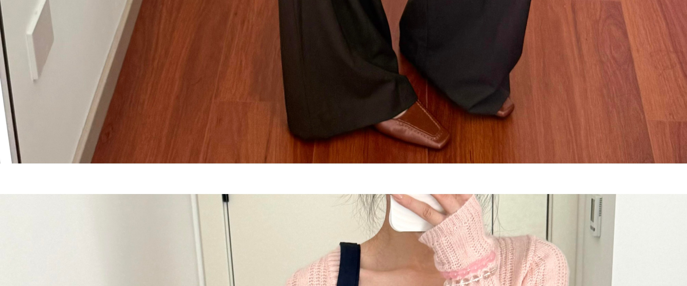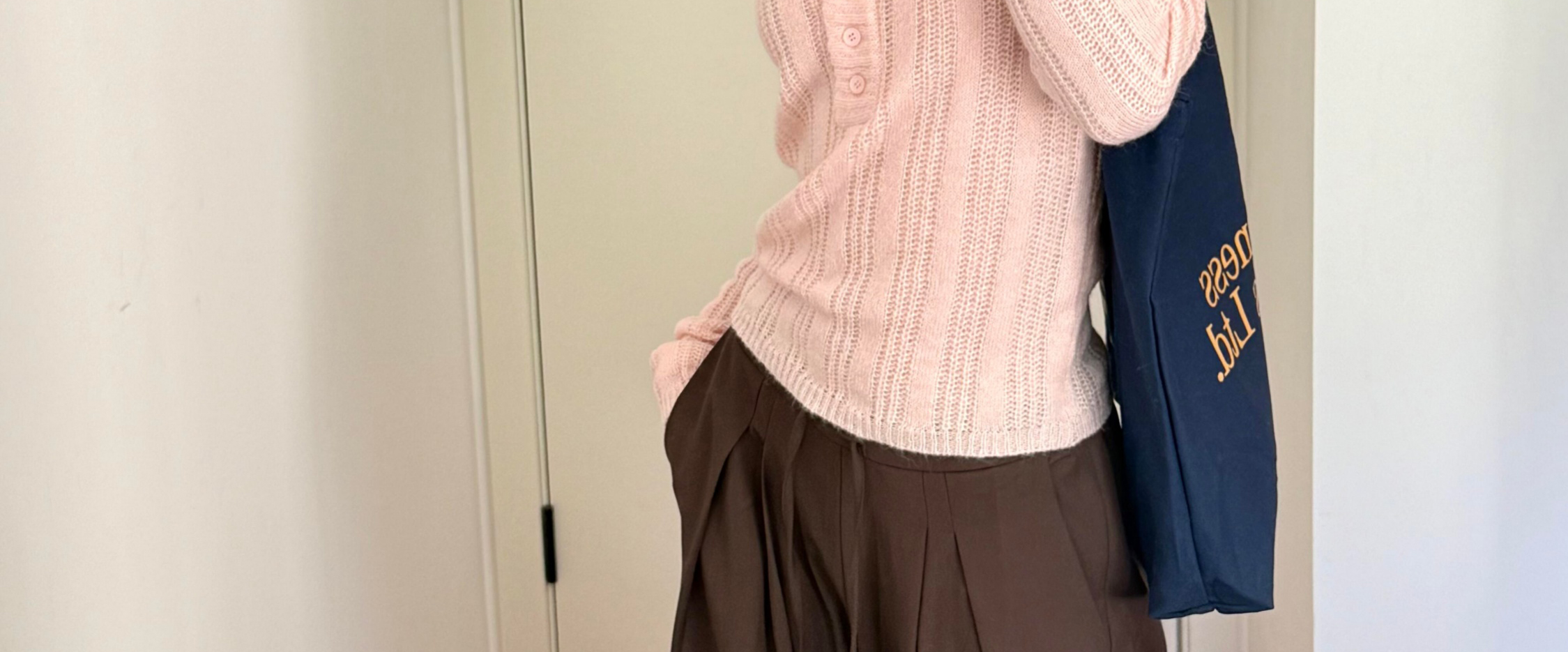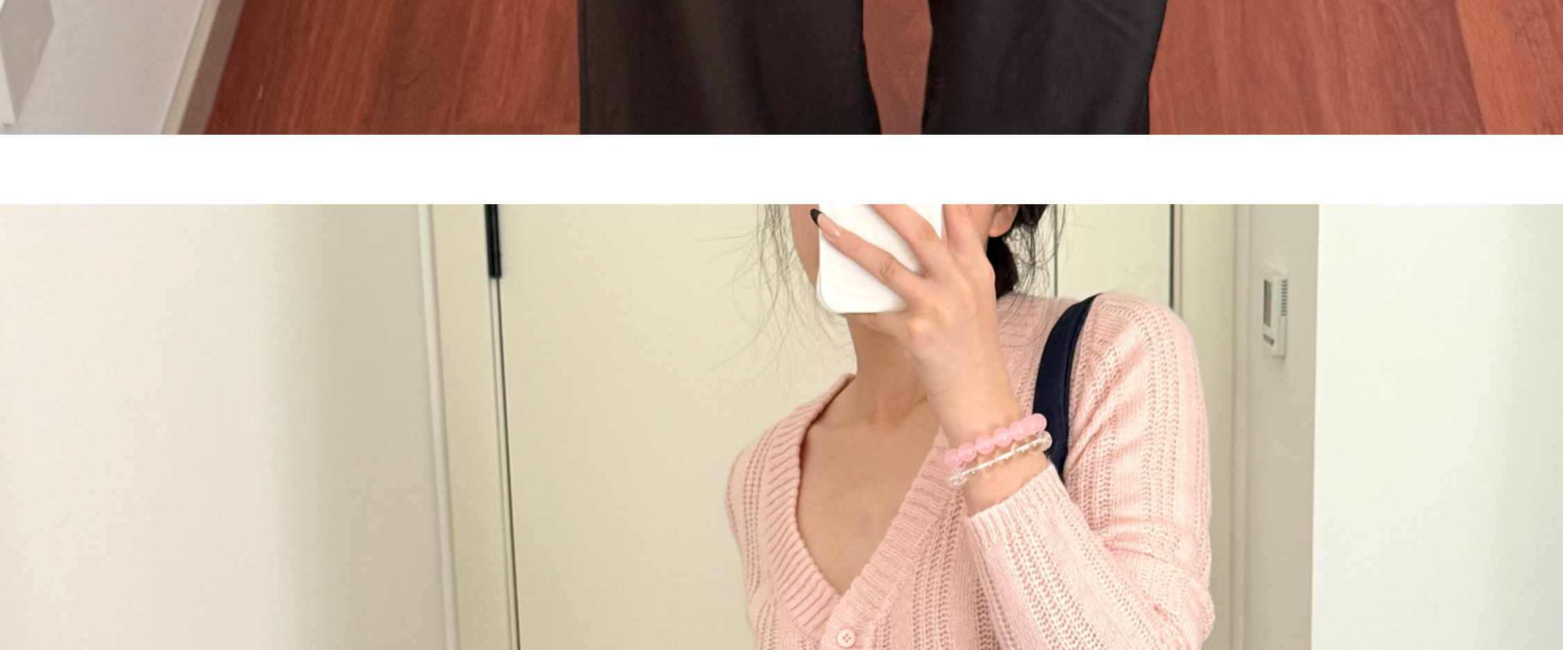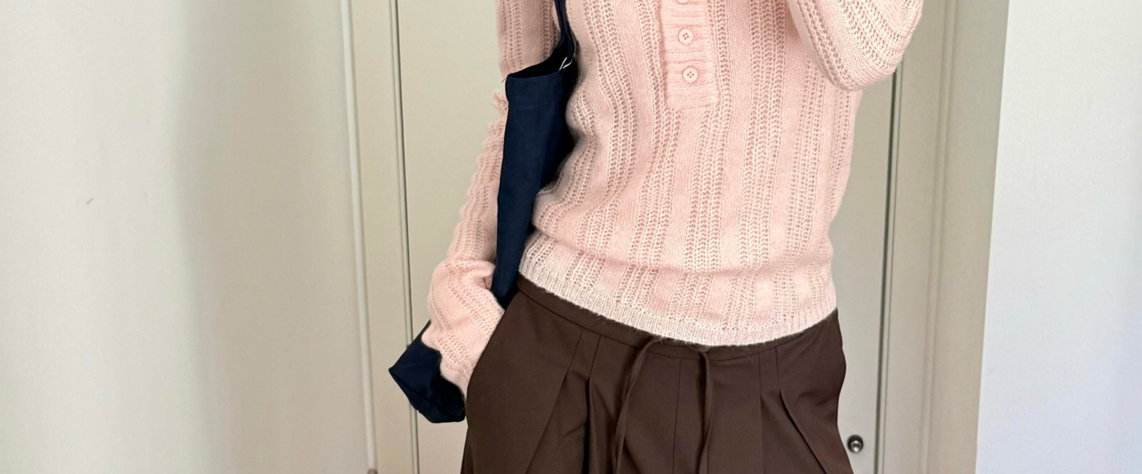 Light pink V-neck knit sweater with vertical hollow pattern. Soft and relaxed fit for casual autumn looks.