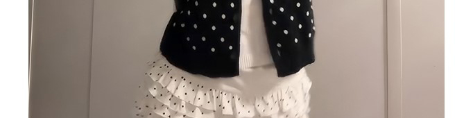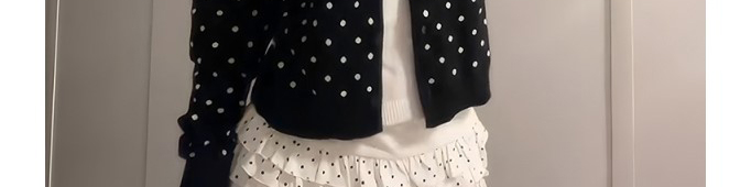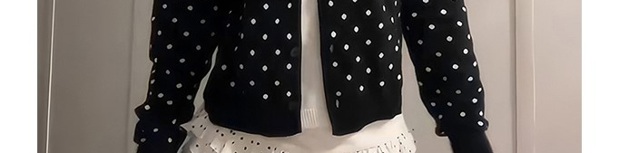 Retro polka-dot layered knit with cardigan design. Slim-fit silhouette highlights a vintage feminine vibe.