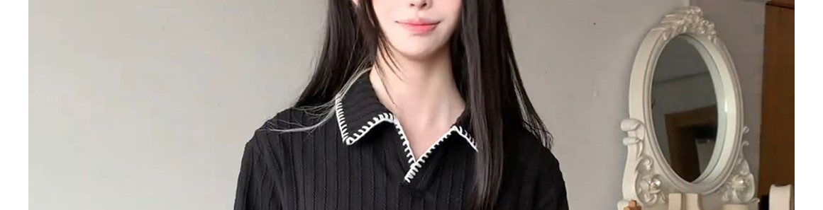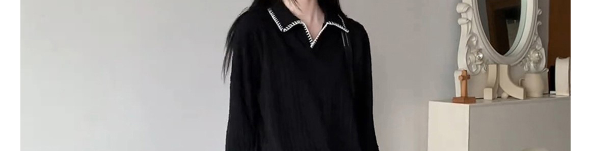 Retro polo collar knit sweater. Loose fit, stylish and versatile for autumn and winter wear.