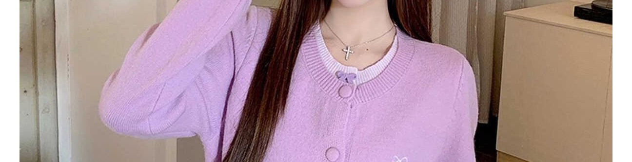 Purple Bow Layered Knit Cardigan