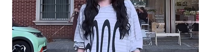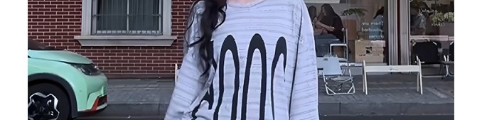 Soft dark purple striped long sleeve tee with digital print. Loose-fit and comfy for relaxed daily outfits.