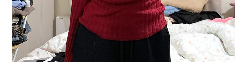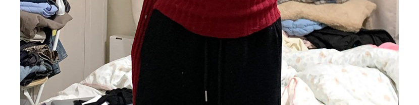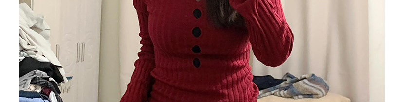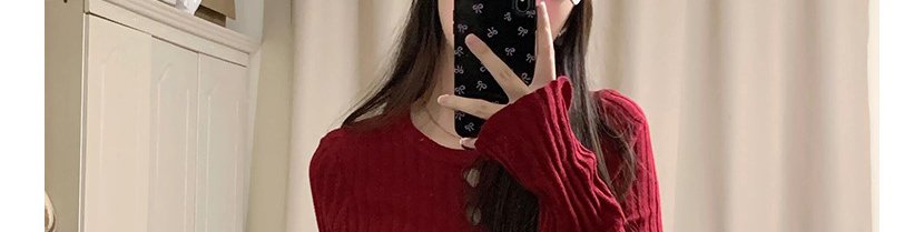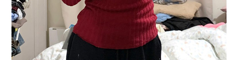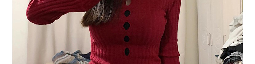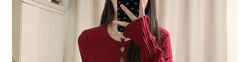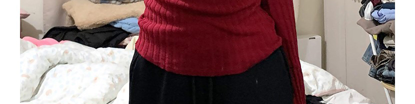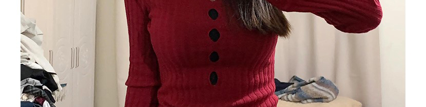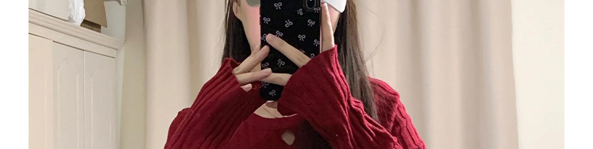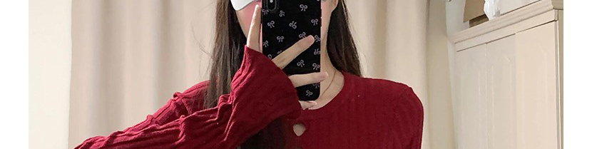 - Top: Sexy red knit long-sleeve top with hollow-out design and slim fit for a statement look.