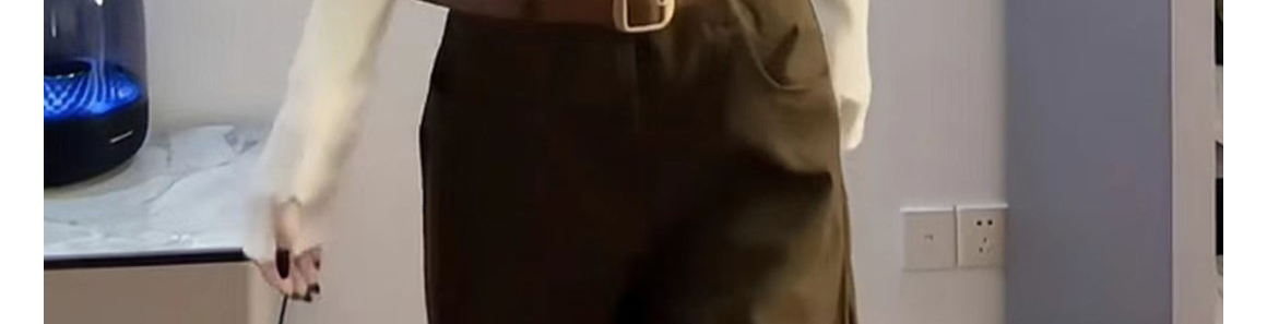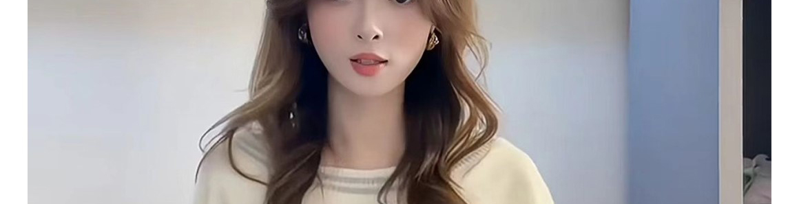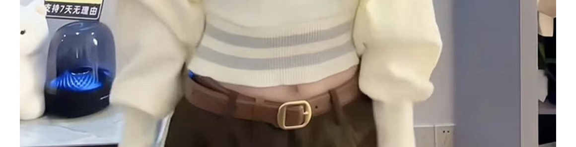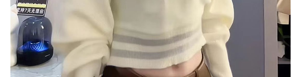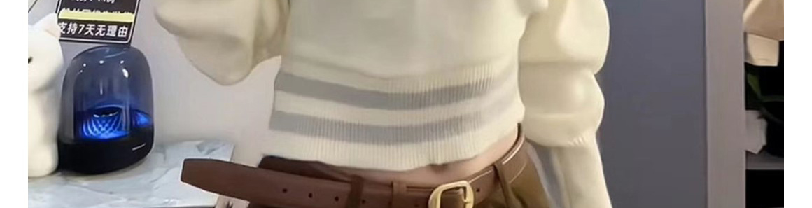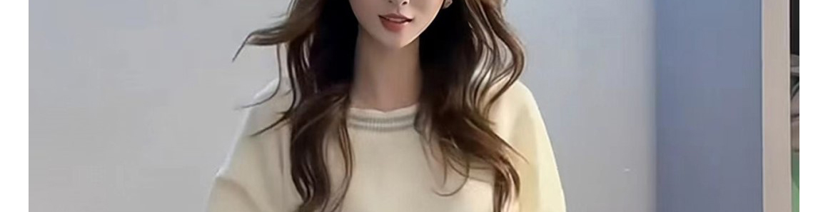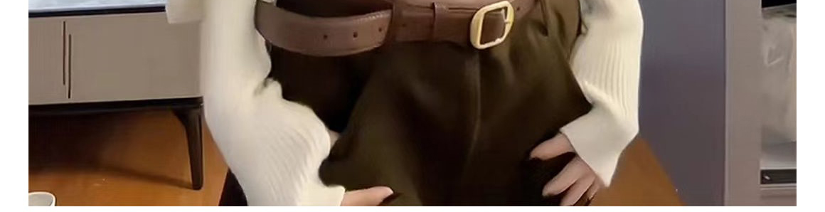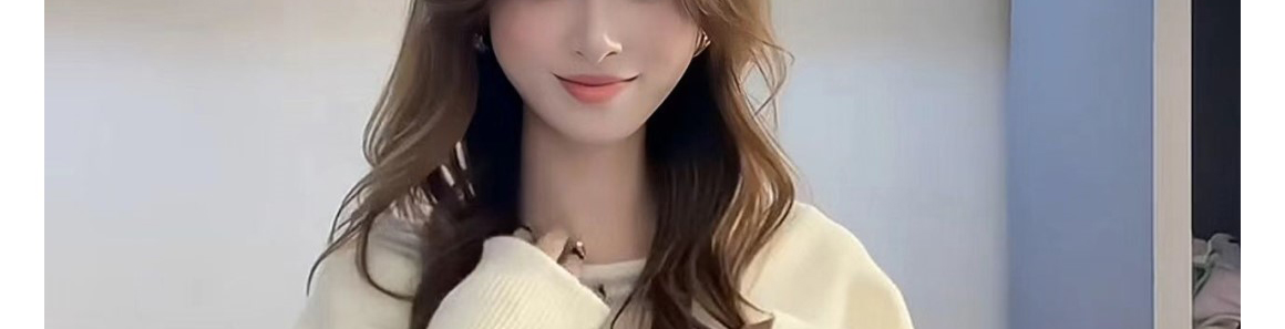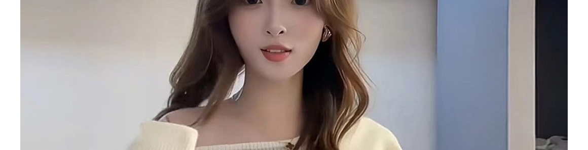 - Top: Soft knit crop sweater with one-shoulder design, loose-fit autumn fabric, cozy and chic style.