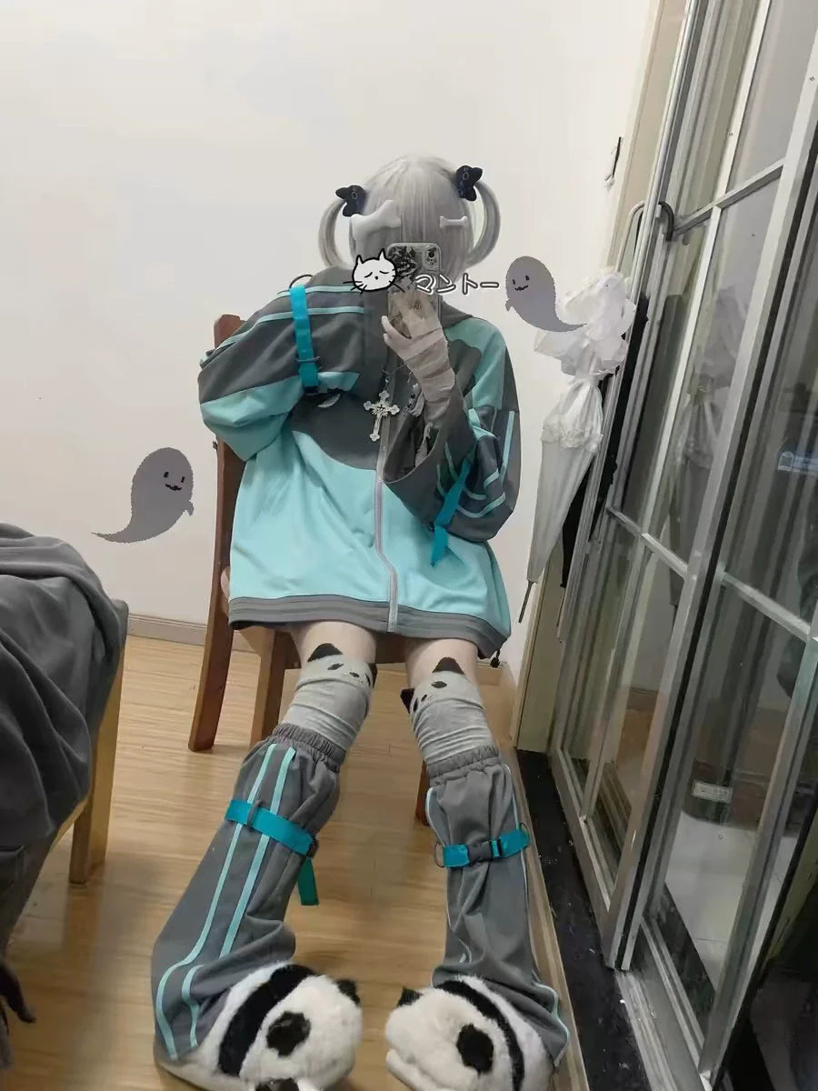 - Set: Two-piece set includes sport hoodie jacket and leg warmers, blending Y2K Japanese anime style and mass-produced sporty design. Lightweight for spring-autumn.