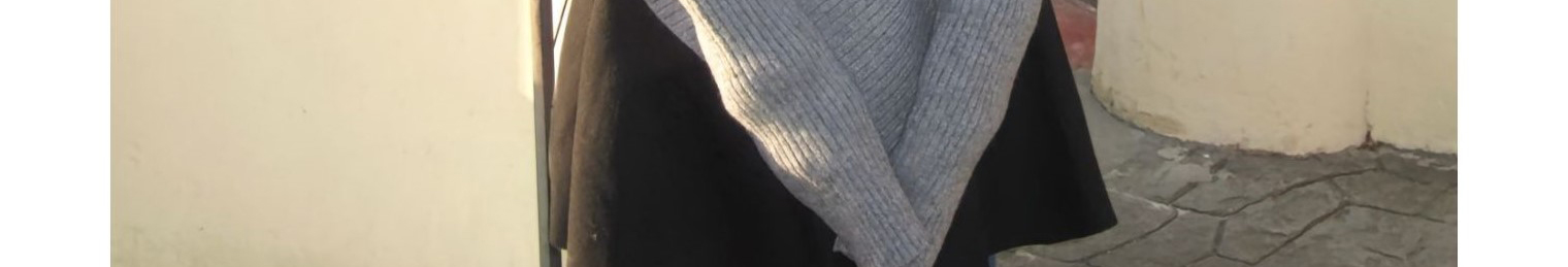 Lazy style cape knit sweater with irregular hem and high neck. Loose fit, chic and unique for autumn.