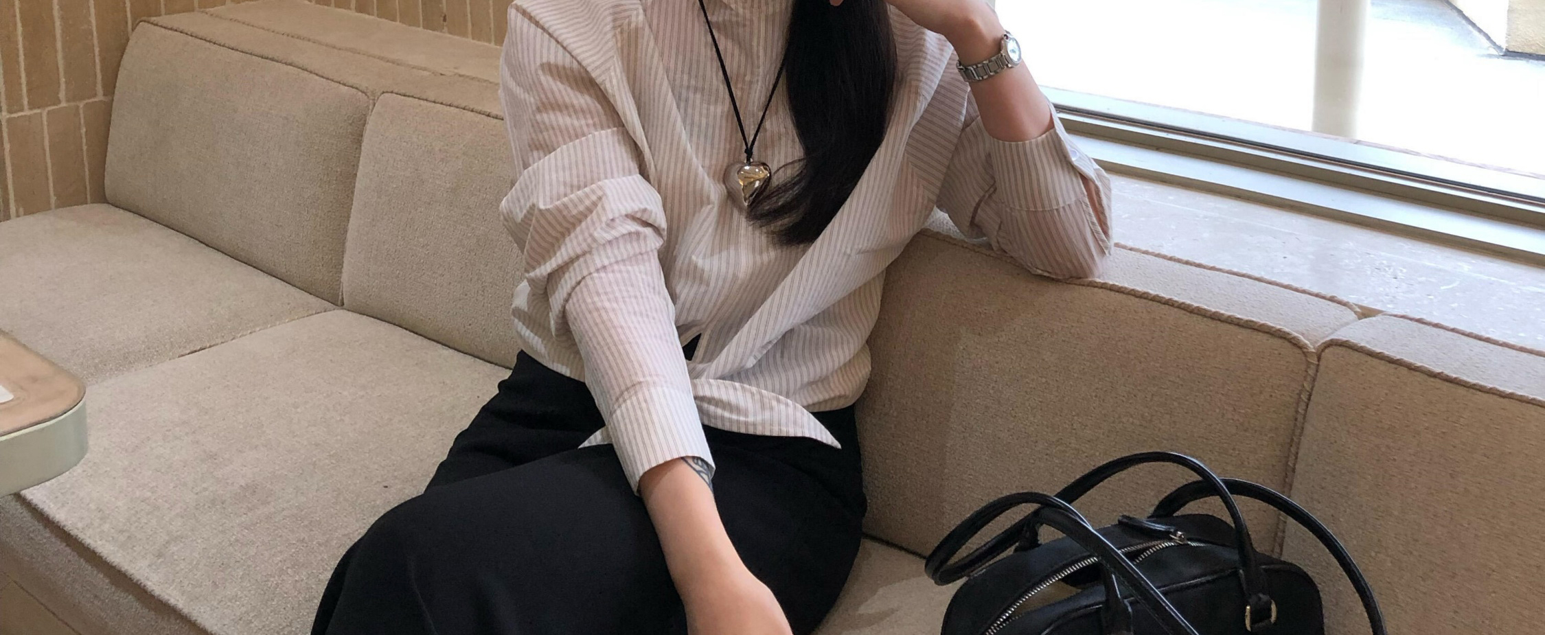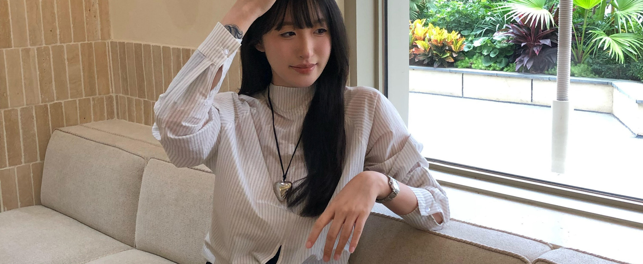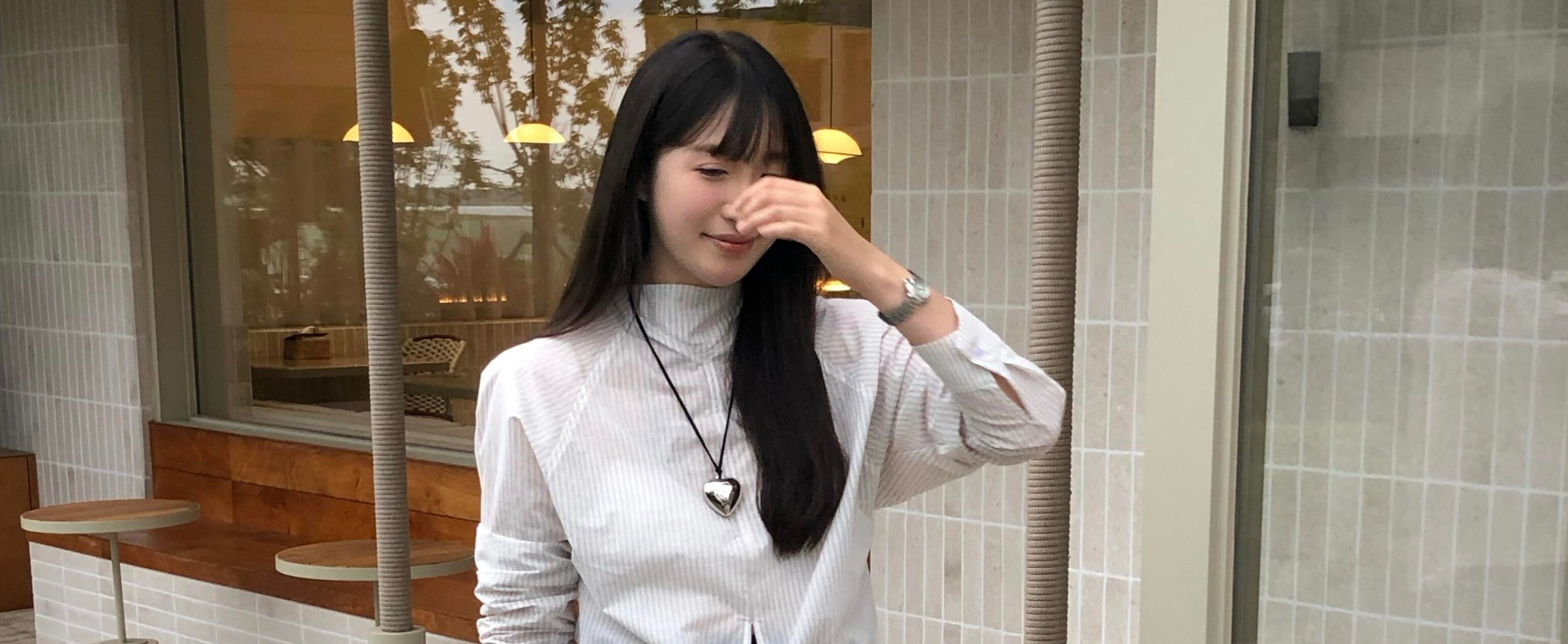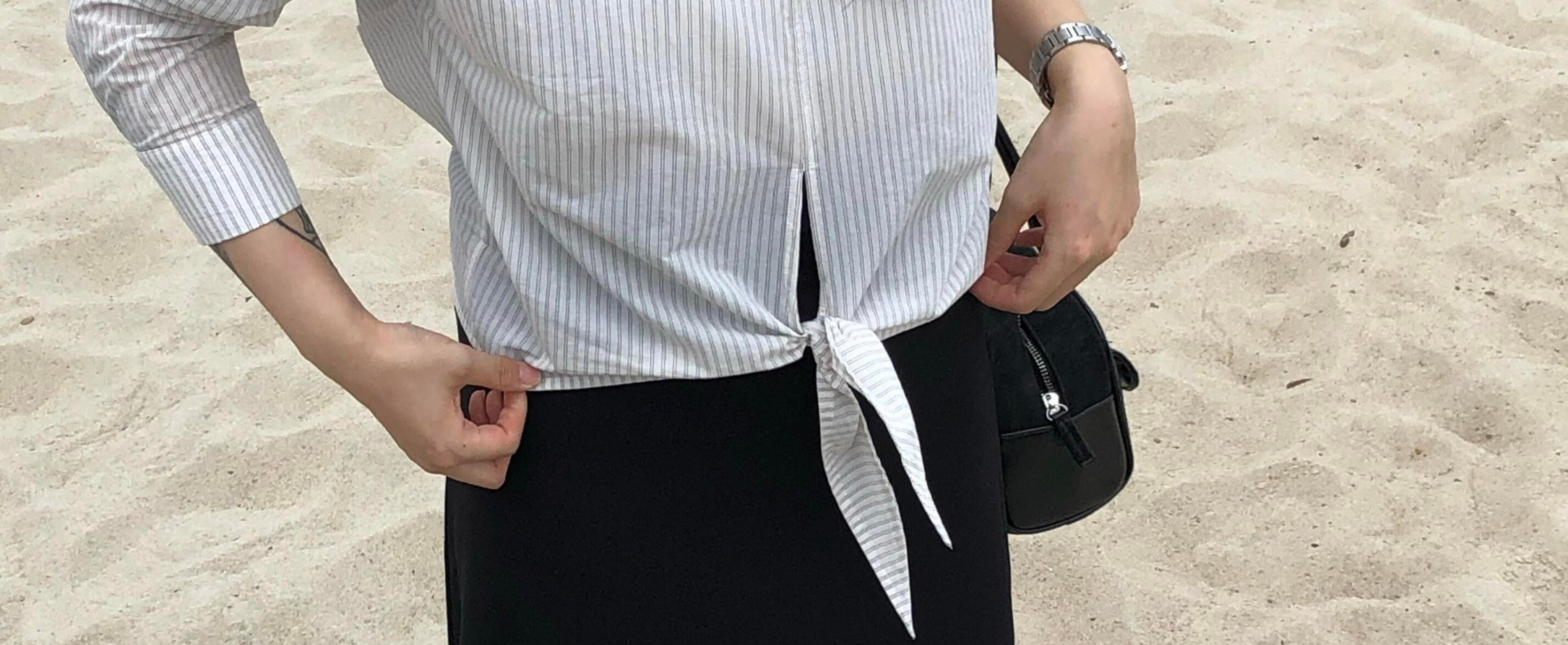 Striped long sleeve shirt with tie raglan sleeves. Loose fit, stylish and sun-protective for autumn.