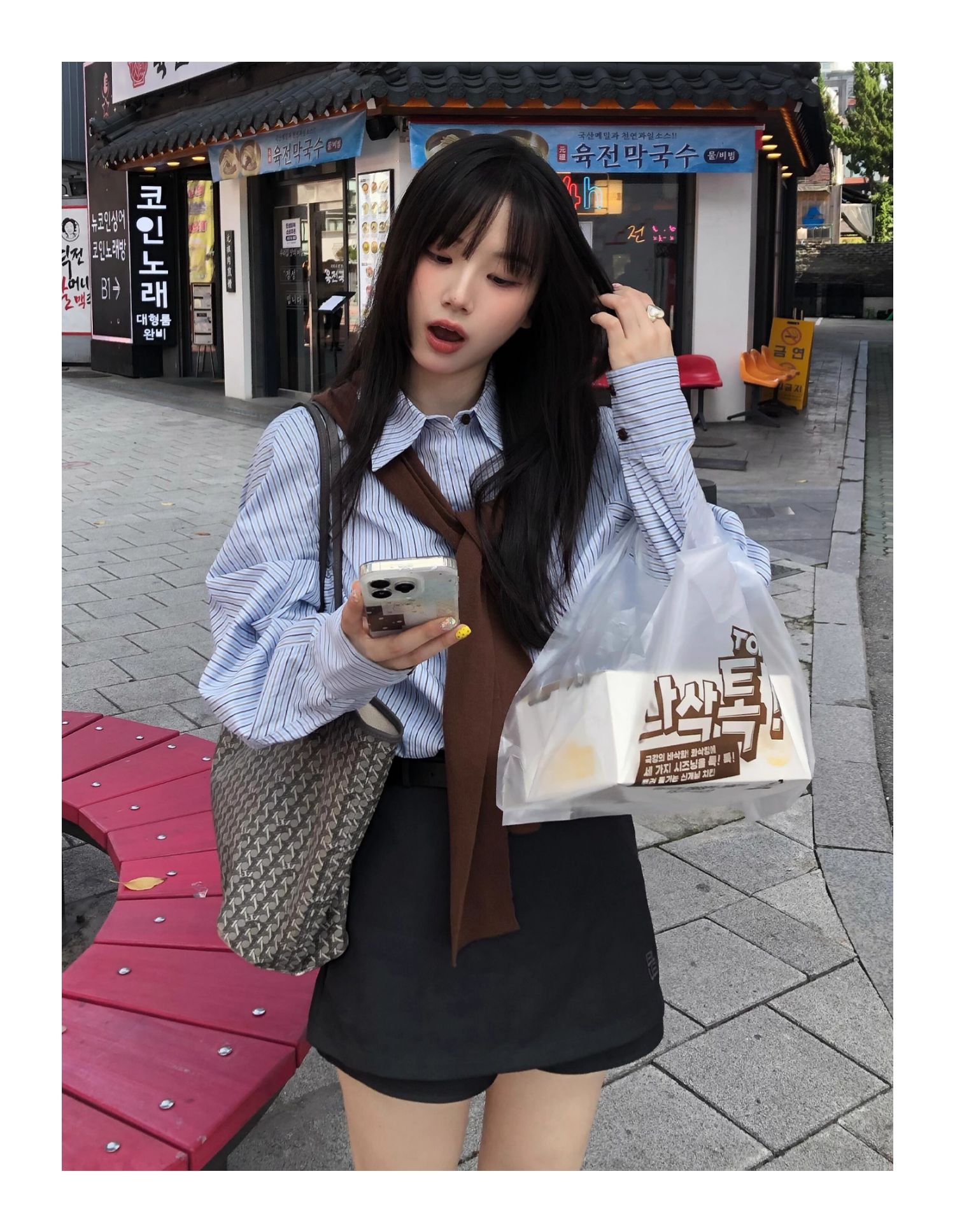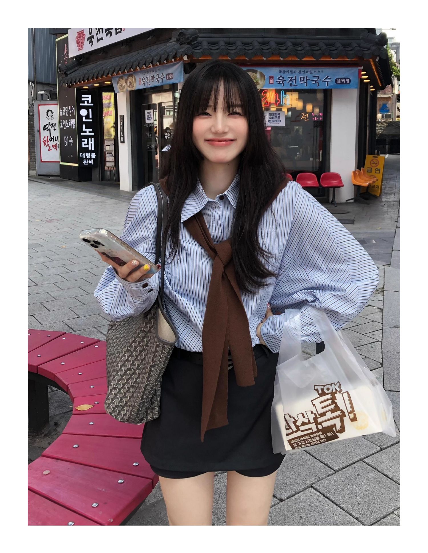 Retro Korean shirt with detachable striped cape. Oversized, stylish and ideal for a layered preppy fall look.