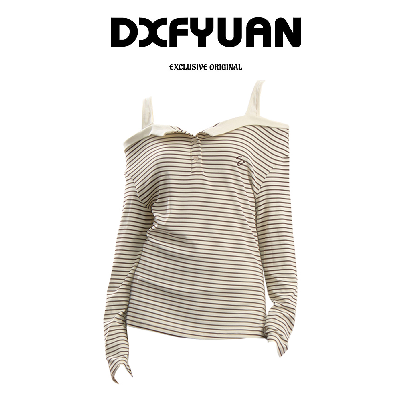 American retro striped long sleeve layered tee. Slim fit, off-shoulder design, stylish for early autumn wear.