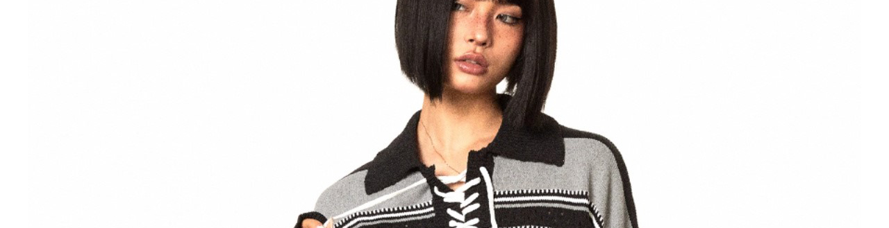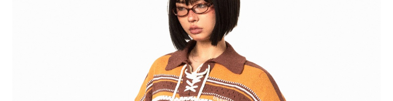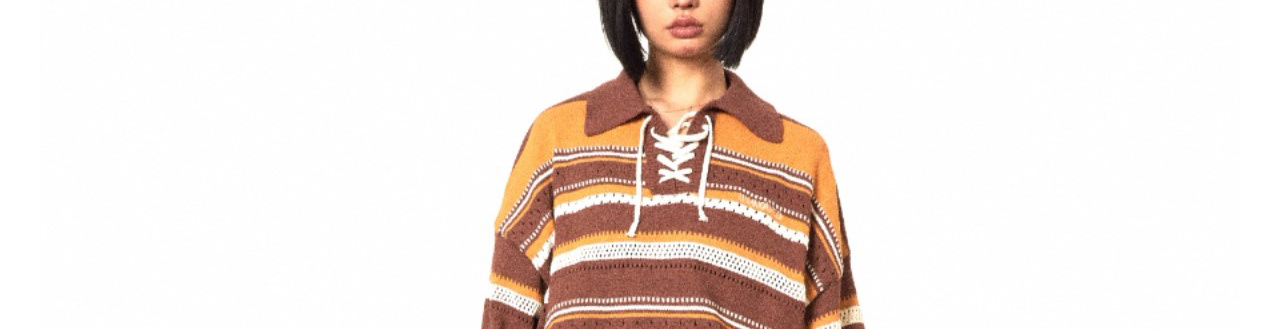 American-style striped polo knit with tie detail. Relaxed and chic design for modern preppy outfits.
