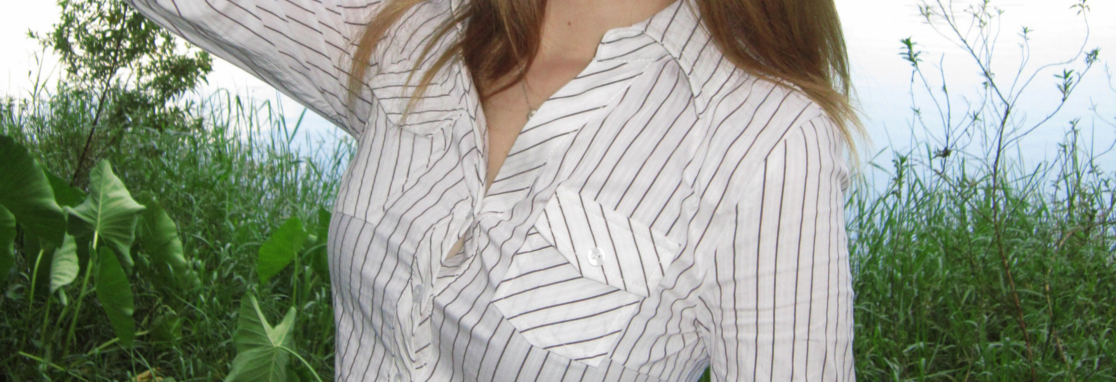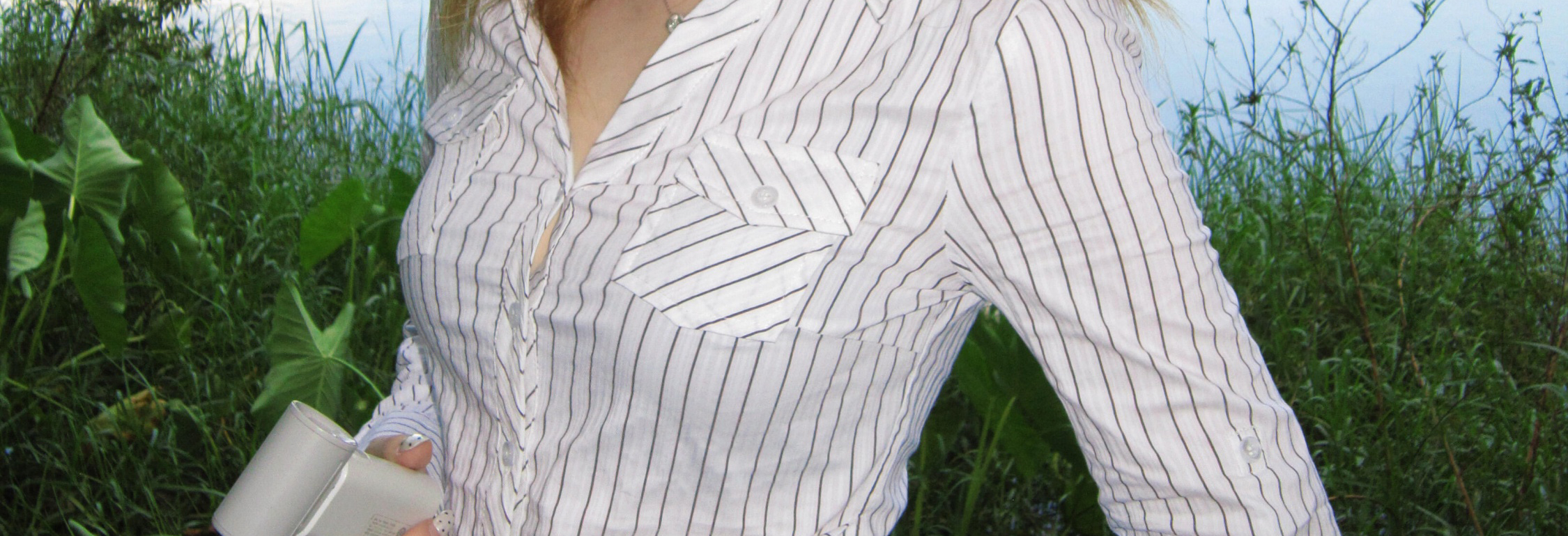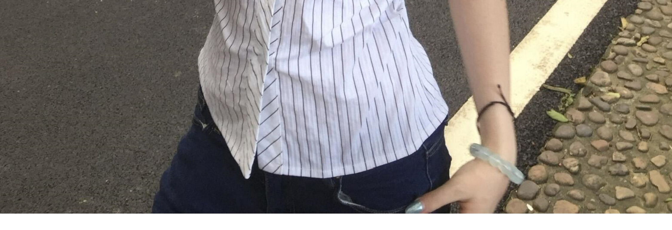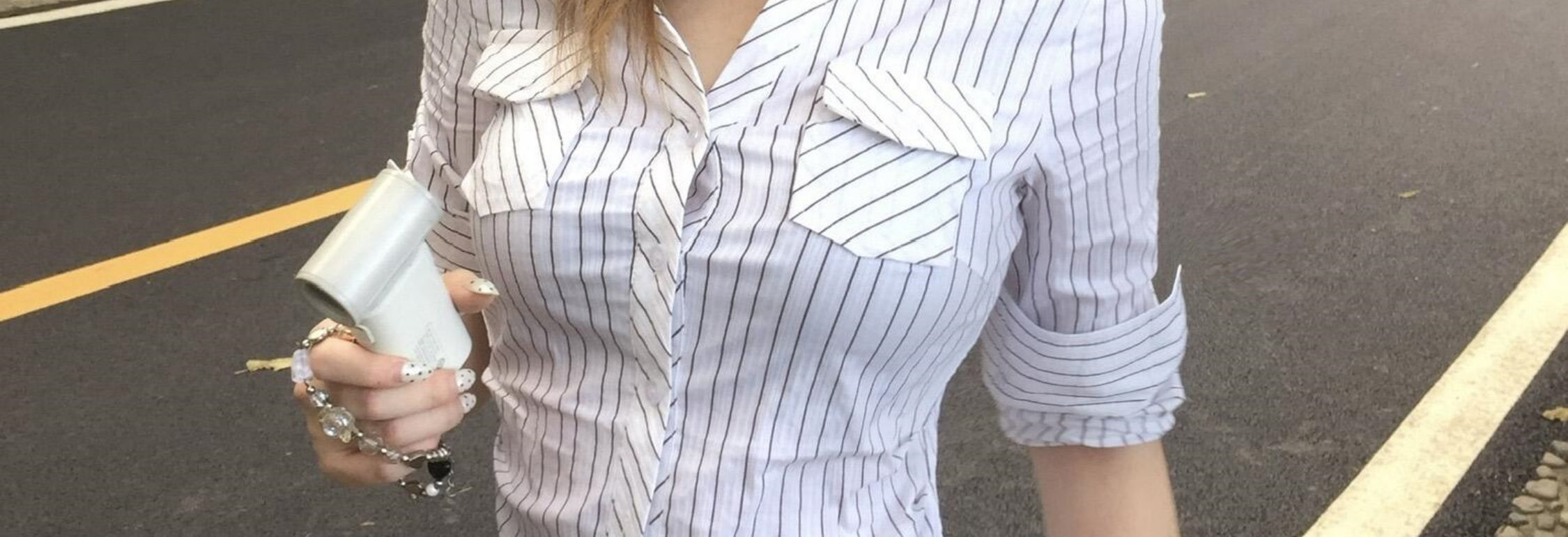 Striped V-neck shirt with slim waist design. Elegant and chic for autumn casual wear.
