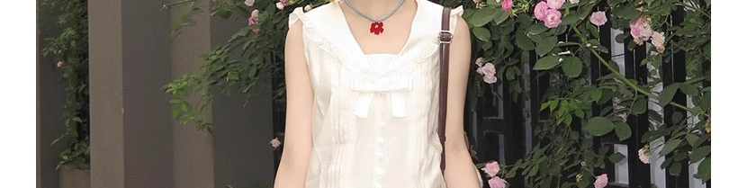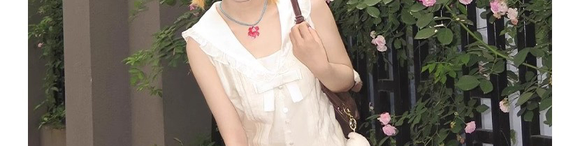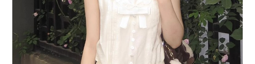- Dress: Sleeveless summer dress with sailor collar, bow tie, and flared silhouette, lightweight fabric.