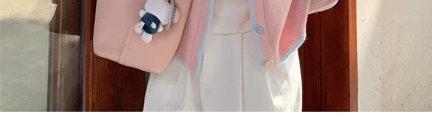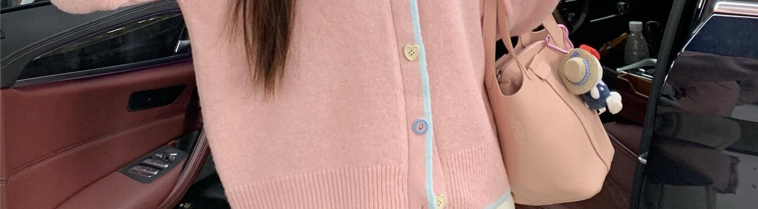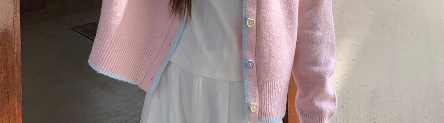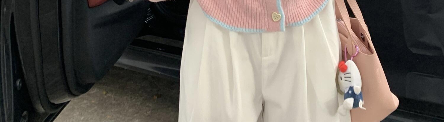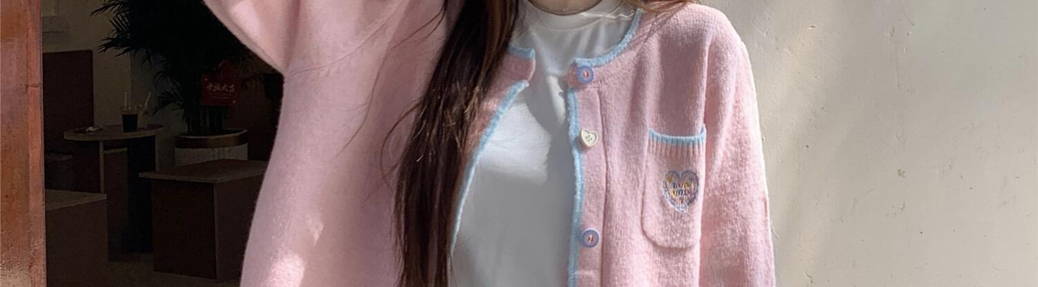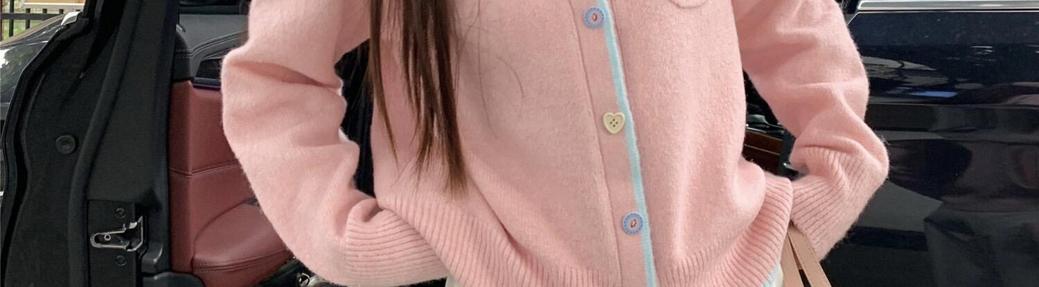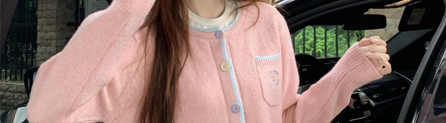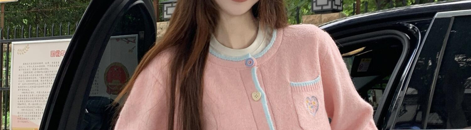 - Cardigan: Soft early autumn knit cardigan with heart embroidery and colorblock design, cozy fabric.