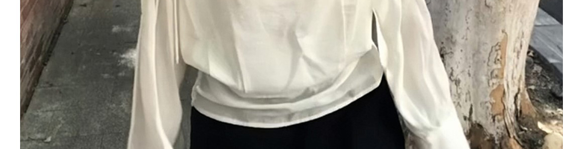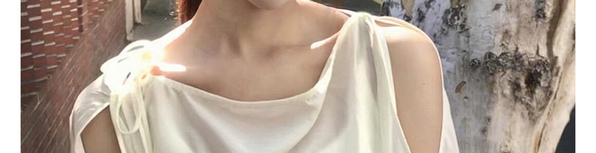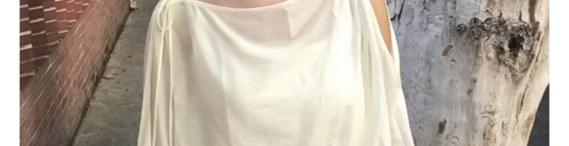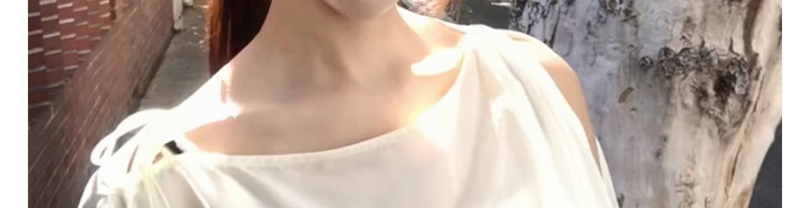 Graceful off-shoulder blouse with tie details. Soft texture and elegant Korean vibe, perfect for daily wear.