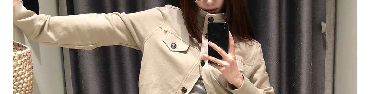 Korean-style high-neck sweatshirt jacket. Loose fit with modern details for daily commute or casual wear.