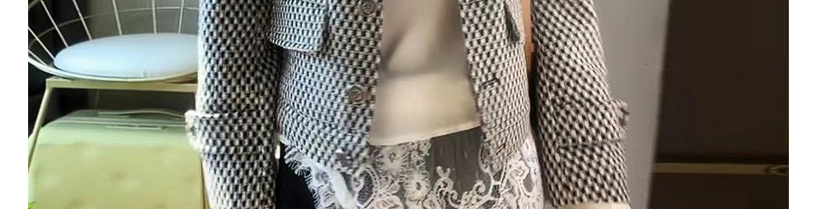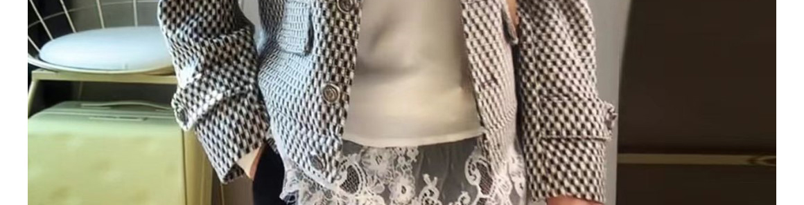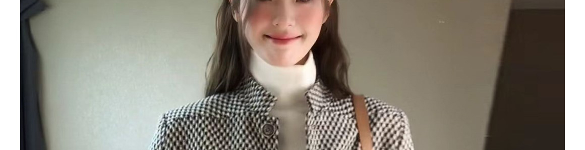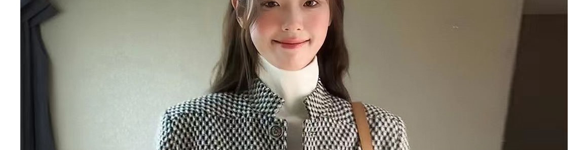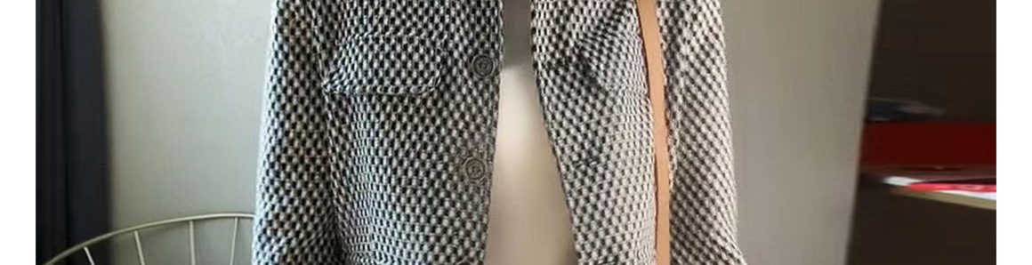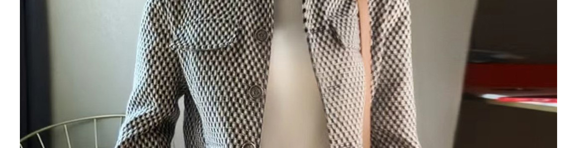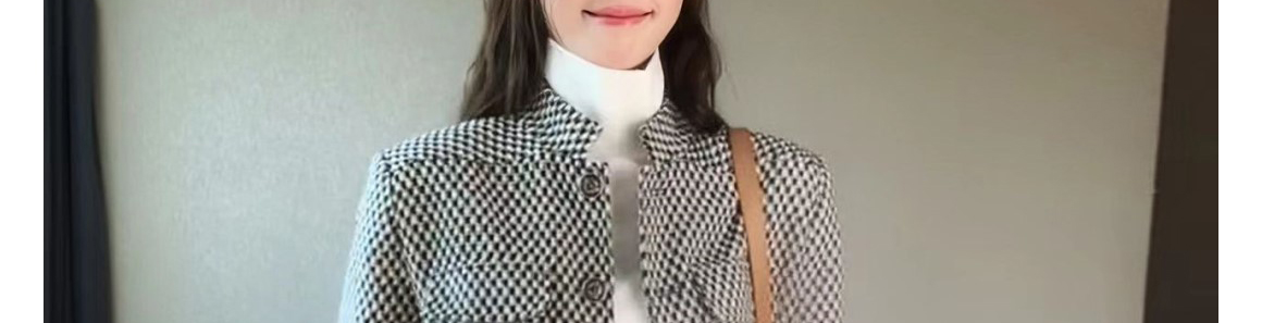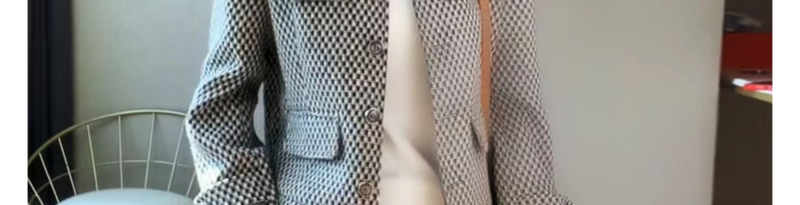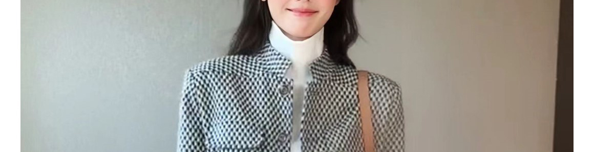 Elegant tweed collar jacket in black and white houndstooth. Perfect for autumn office or casual wear.