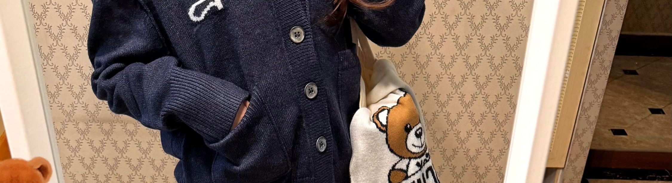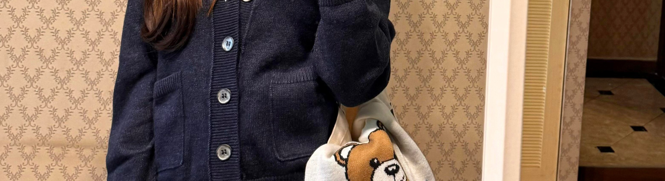 V-neck knit cardigan with pockets. College-style, loose fit and casual for early autumn layering.