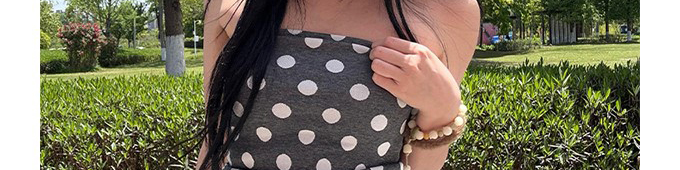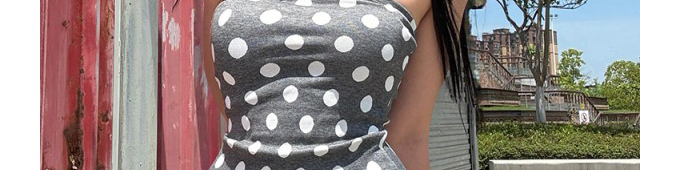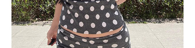 - Top: Sleeveless dot jacquard tube top with matching low-waist fitted shorts, lightweight summer fabric.