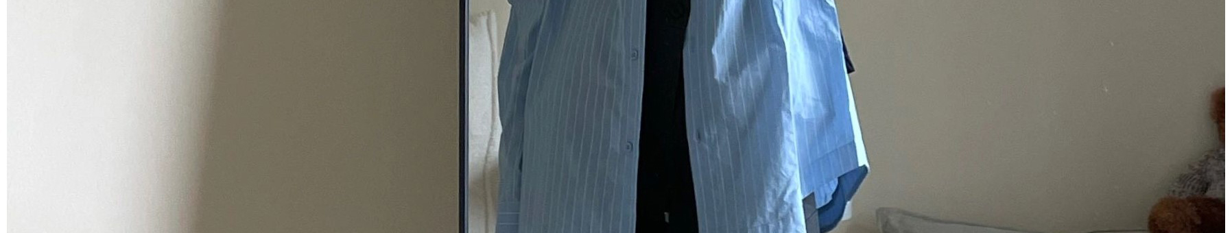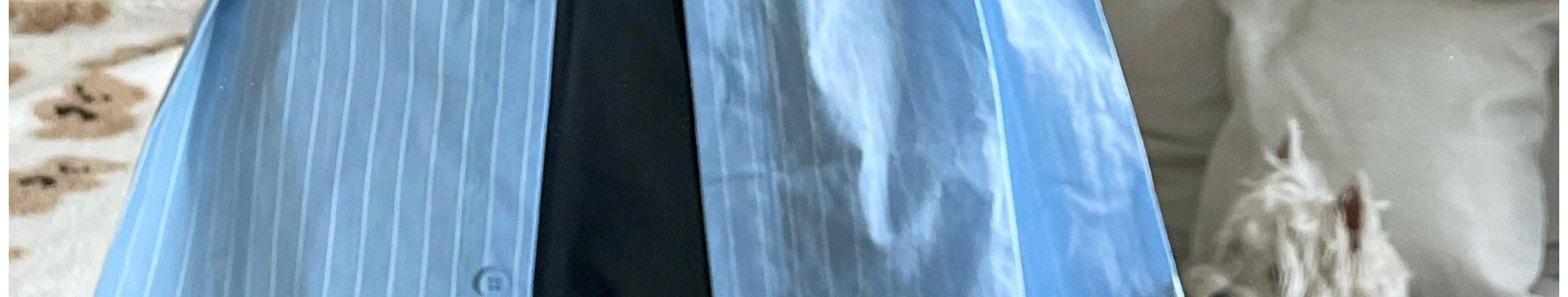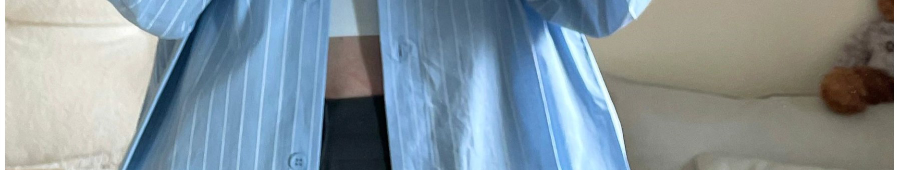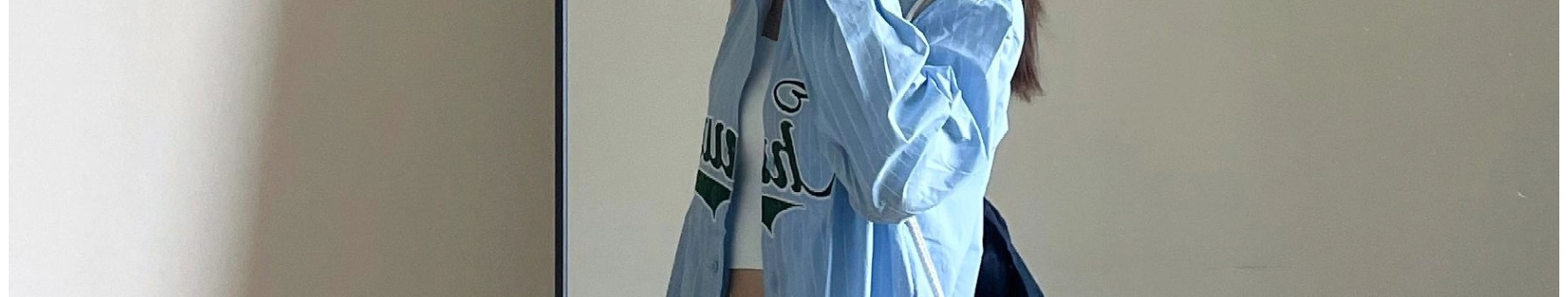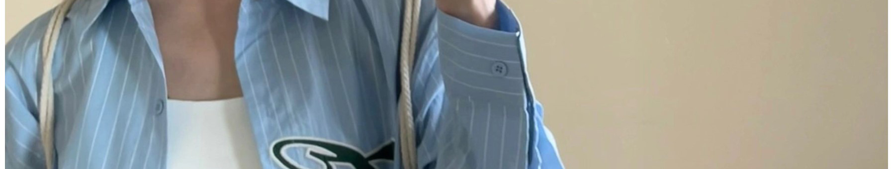 - Top: Loose-fit long sleeve shirt with vertical stripes, breathable summer fabric, versatile casual style.
