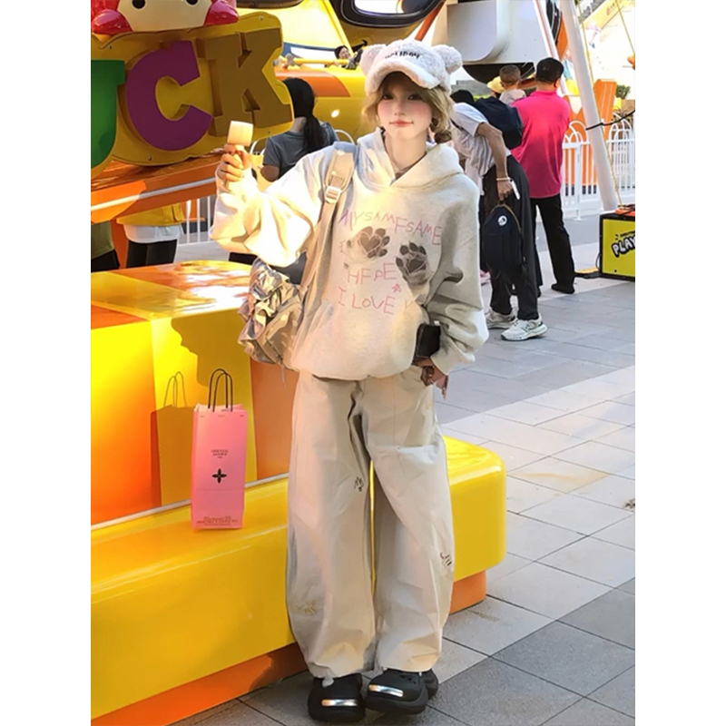Cozy vintage-style heavy hoodie with cat paw print details. Loose fit, perfect for casual or couple outfits in early autumn.