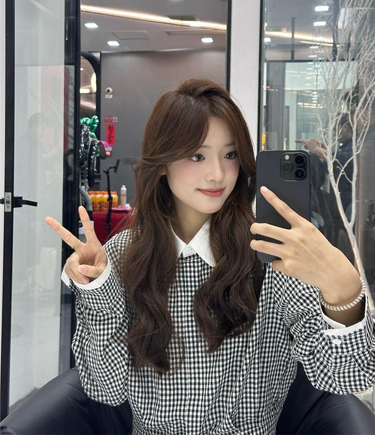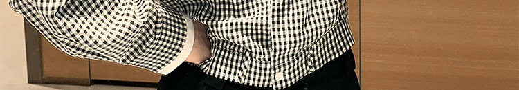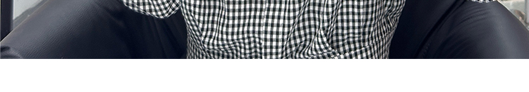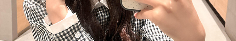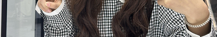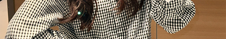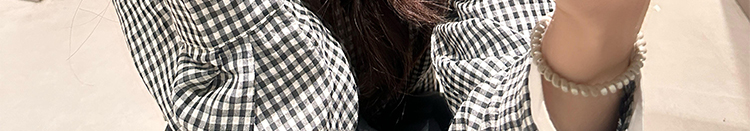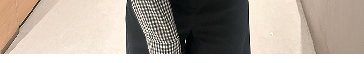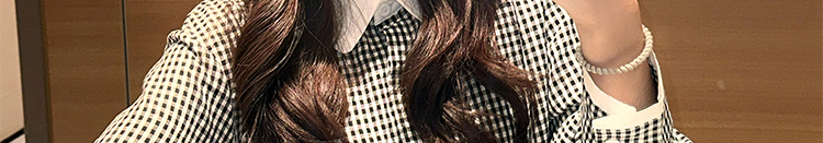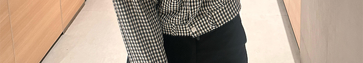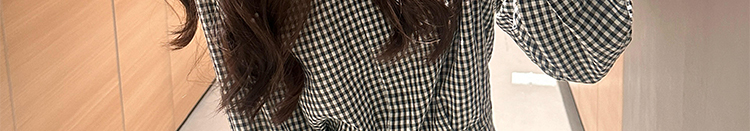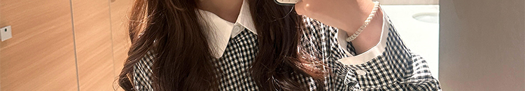 - Top: Loose-fit shirt with classic checkered pattern, doll collar, soft autumn fabric, comfortable fit.