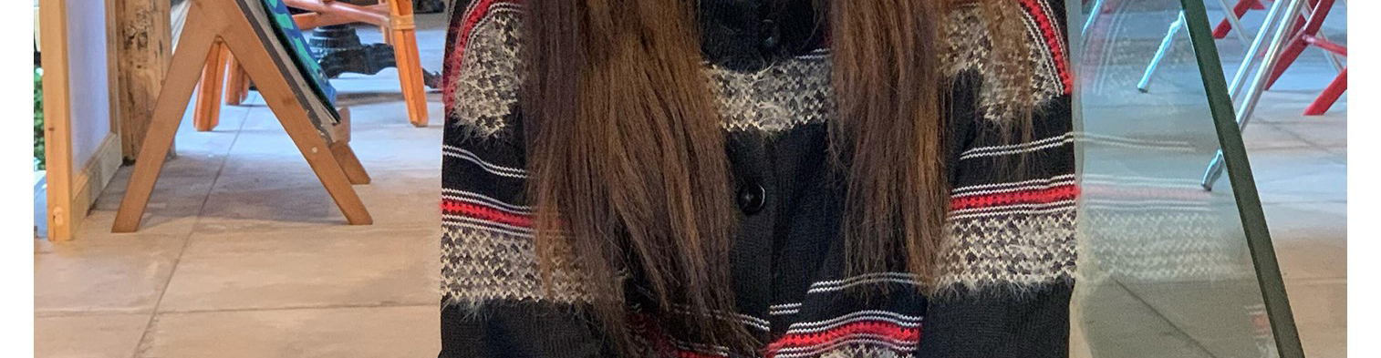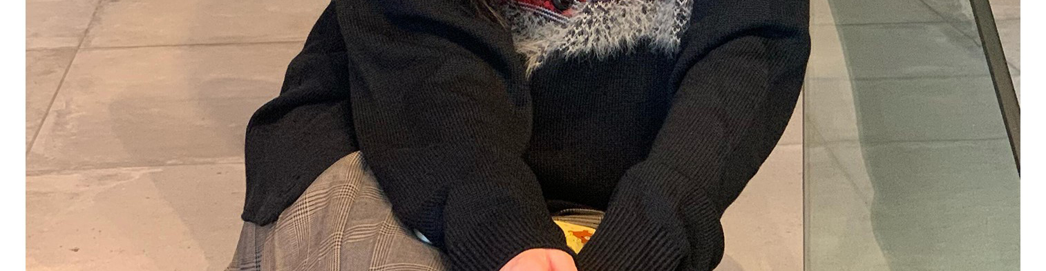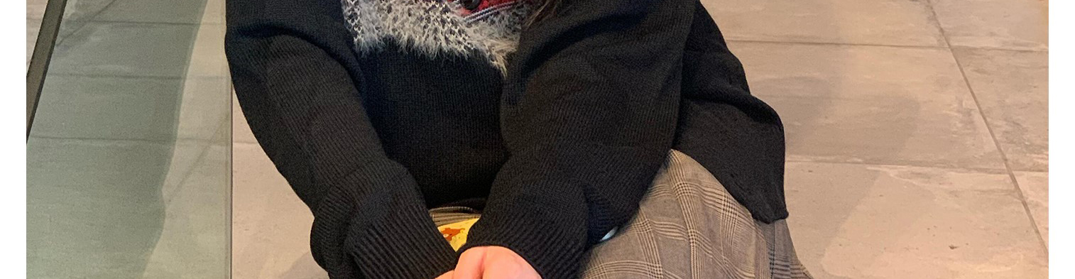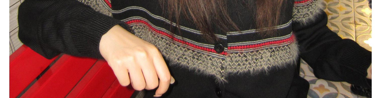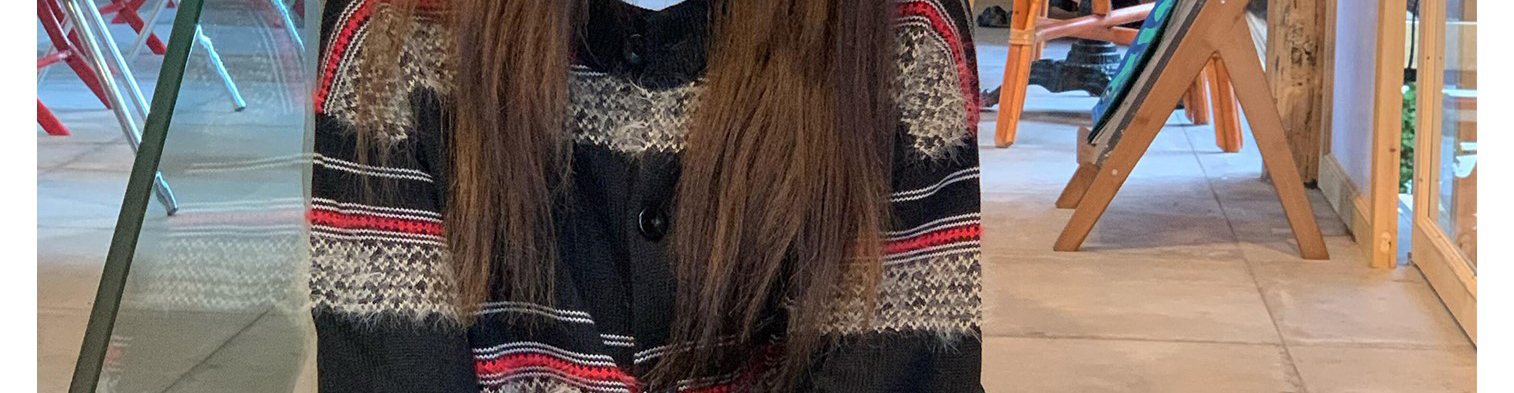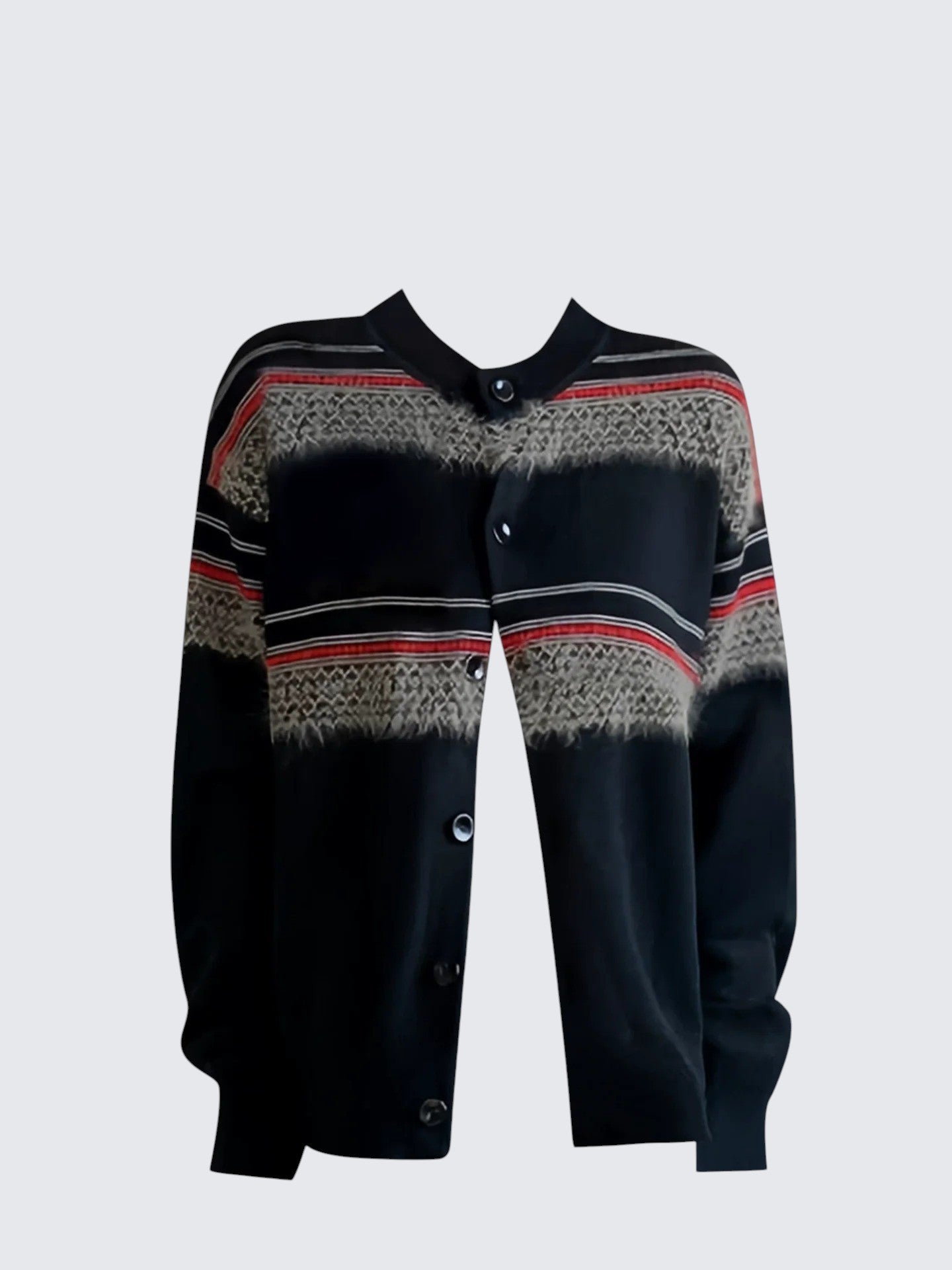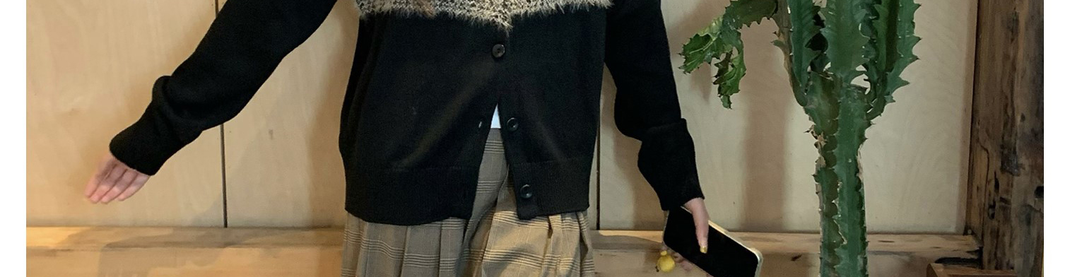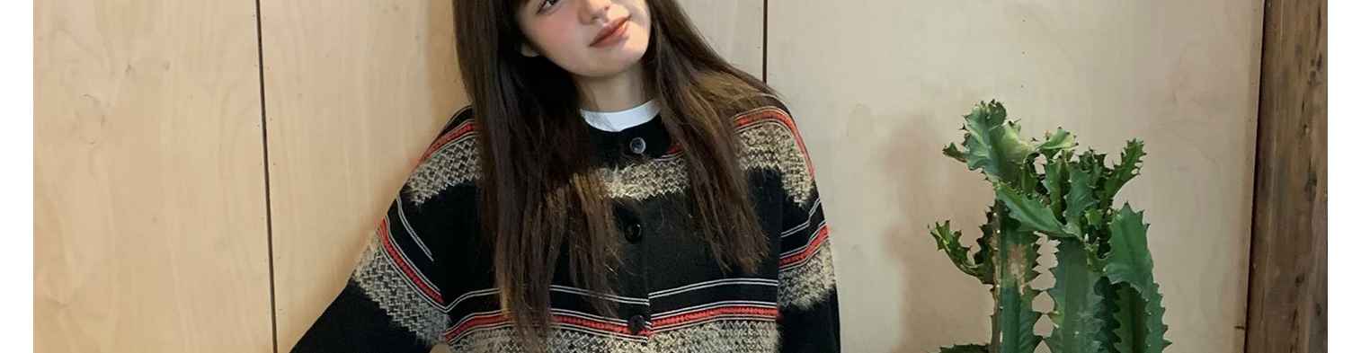 - Cardigan: Striped knit cardigan with faux fur texture, loose fit, autumn fabric with retro and preppy style.