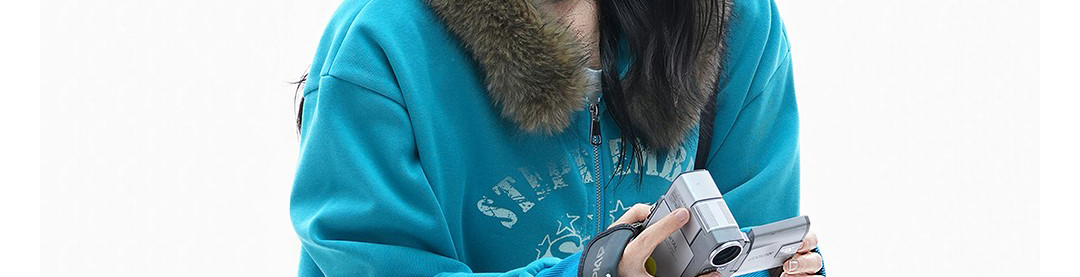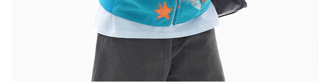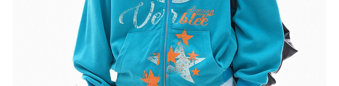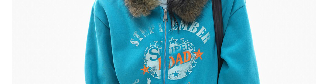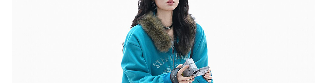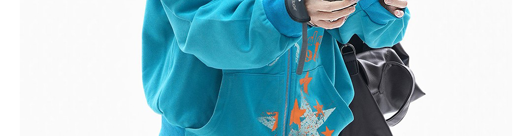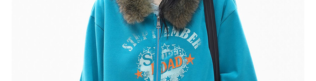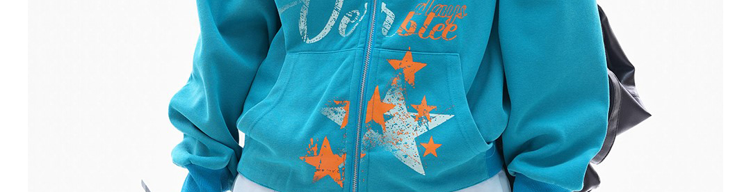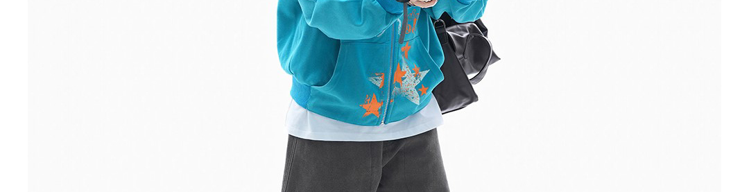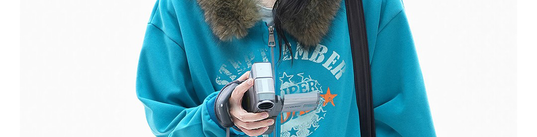 - Top: Hooded long-sleeve cardigan with fur collar, star print, relaxed and cozy fit.